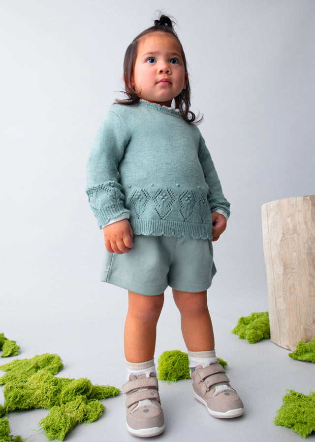 Mayoral Openwork Knit Sweater in Bluebell - is backordered and will ship as soon as it is back in stock.