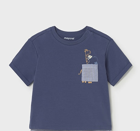 Mayoral Baby Pocket Tee in Blue Giraffe Friends - is backordered and will ship as soon as it is back in stock.