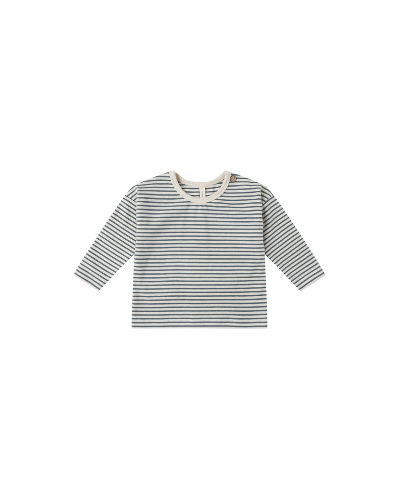 Quincy Mae Long Sleeve Tee || Ocean Micro Stripe