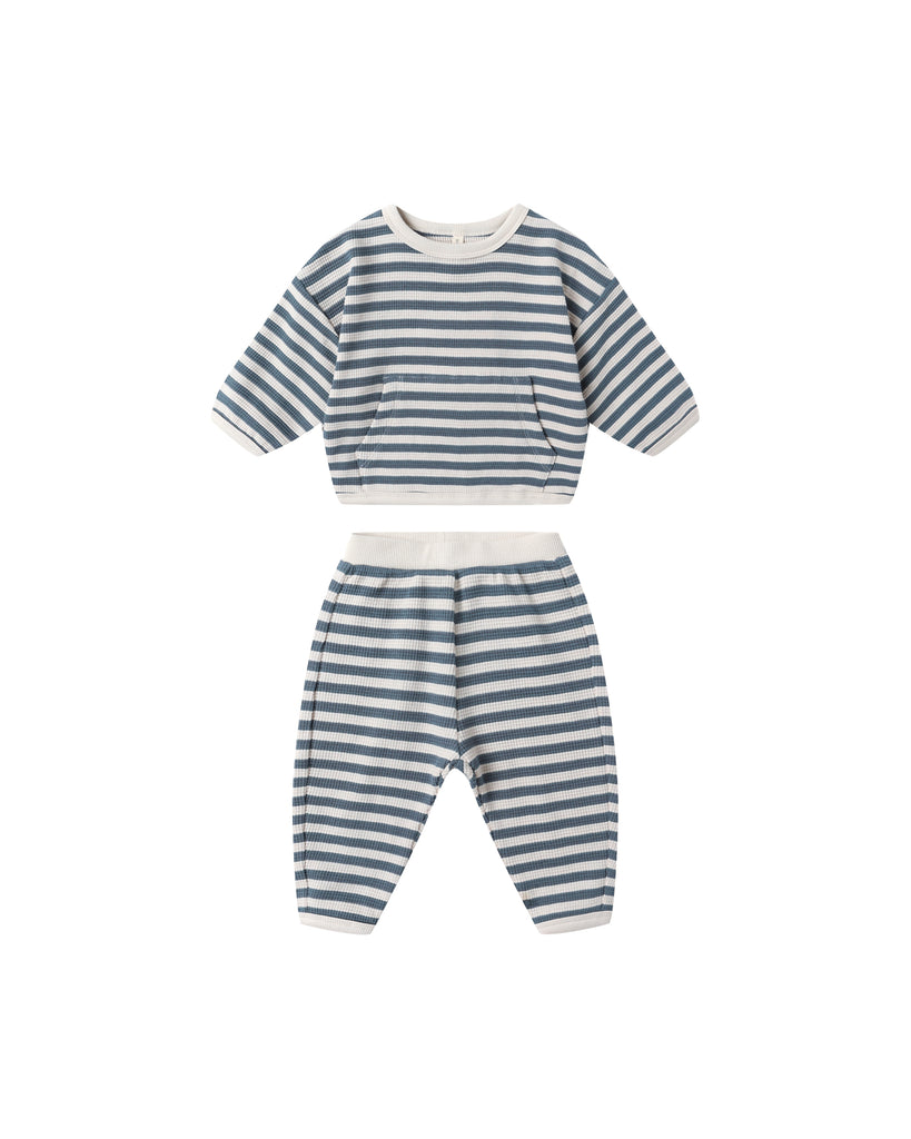 Quincy Mae Waffle Slouch Set || Ocean Stripe