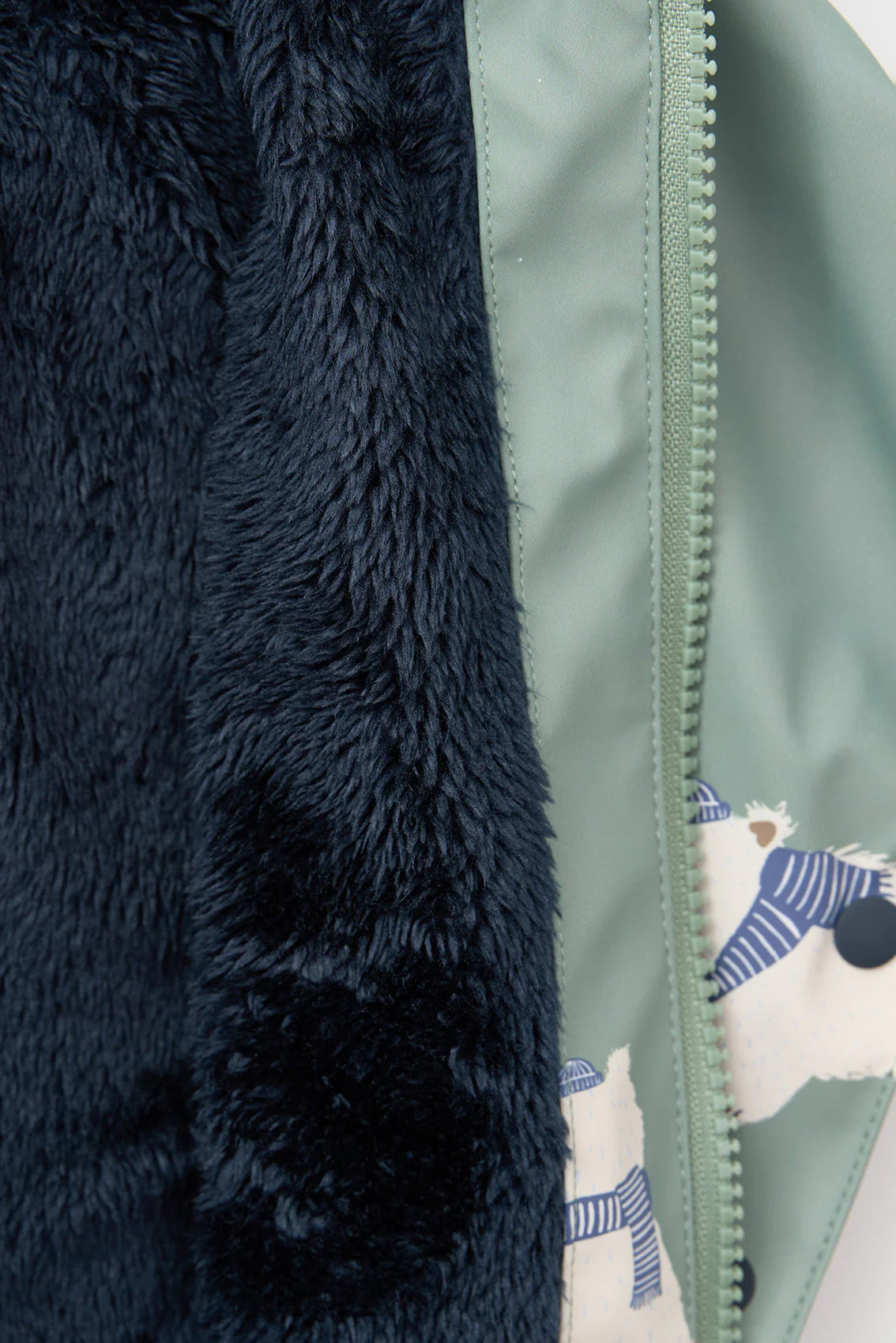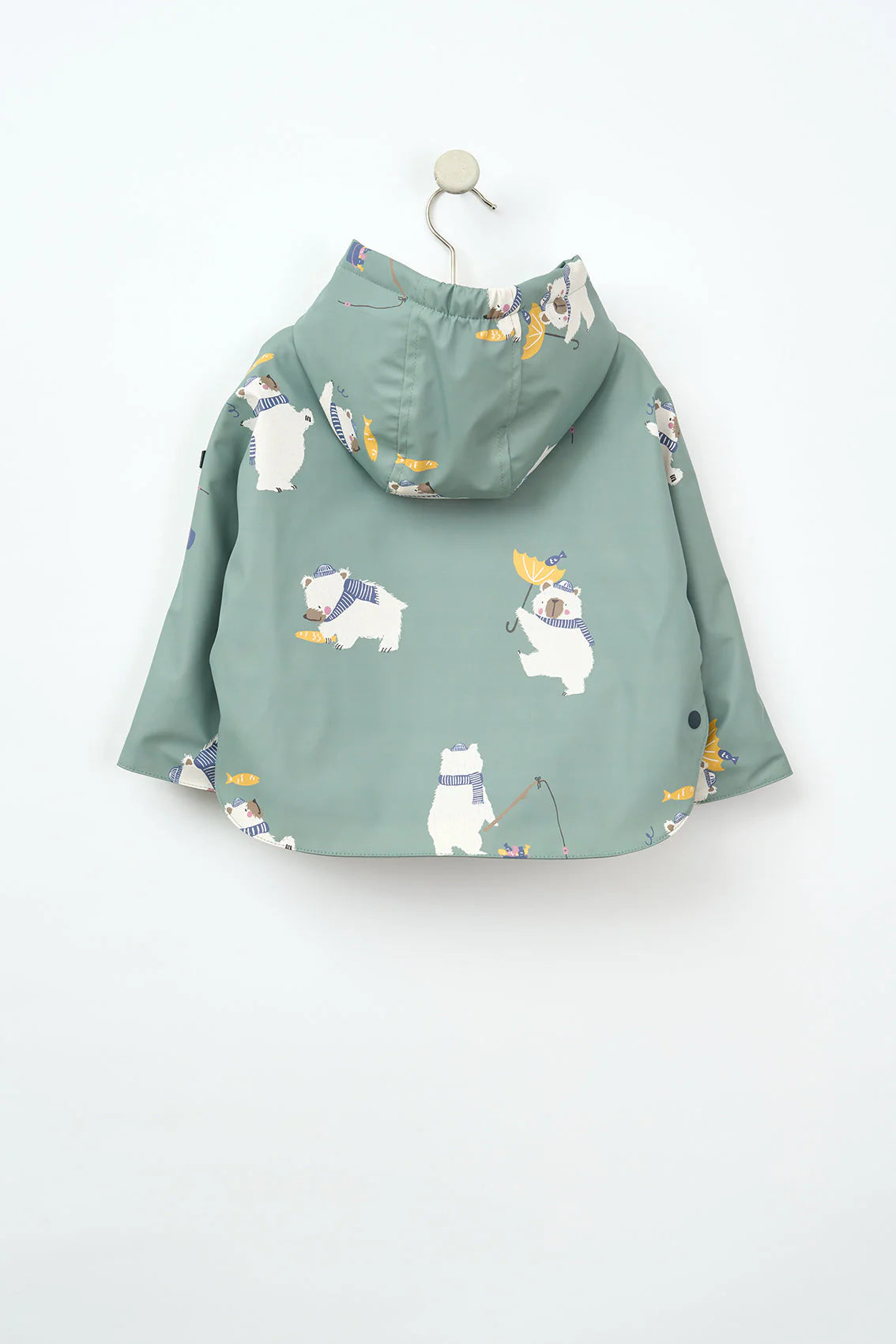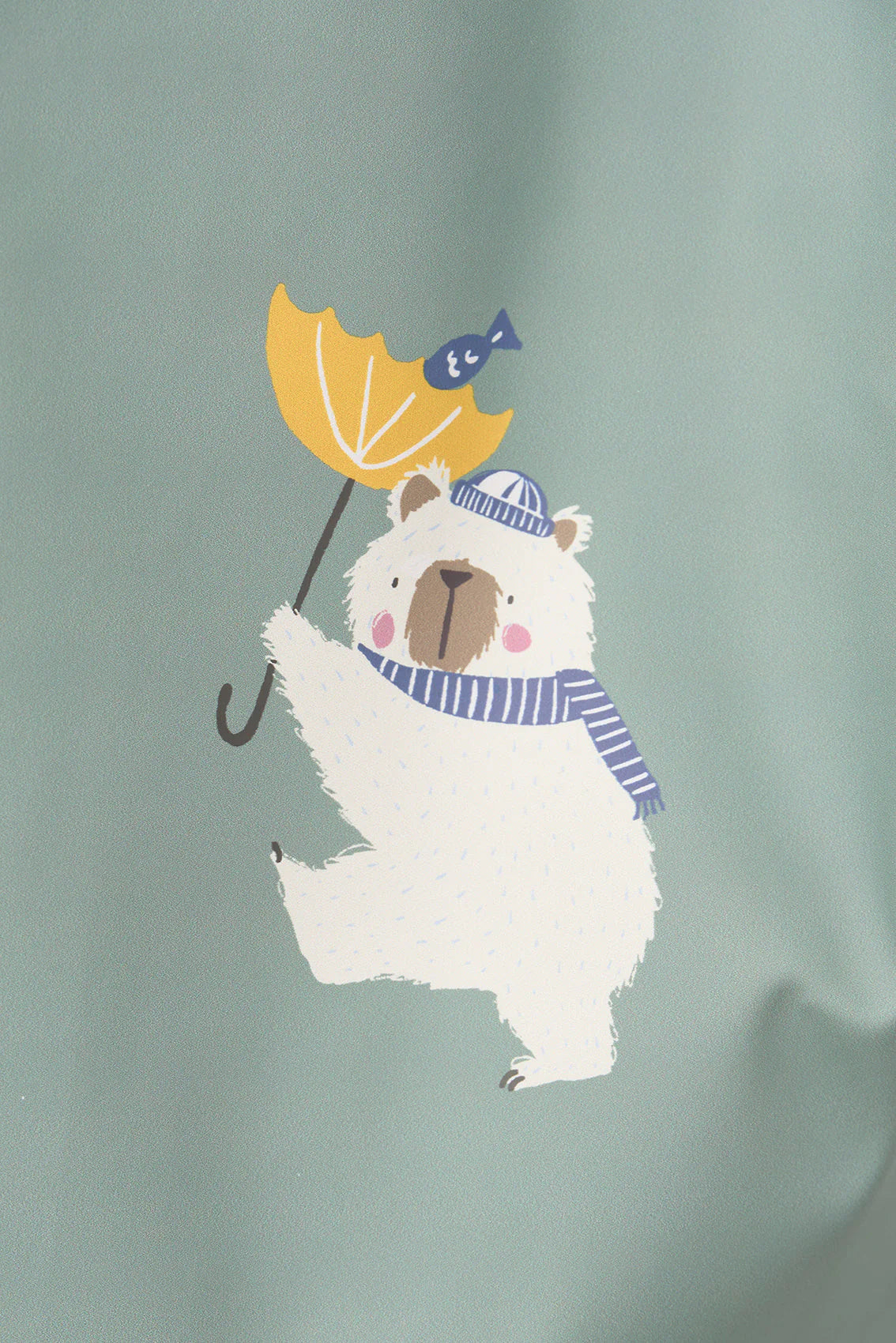 Batela Baby Raincoat with Furry Lining - Sage Bear