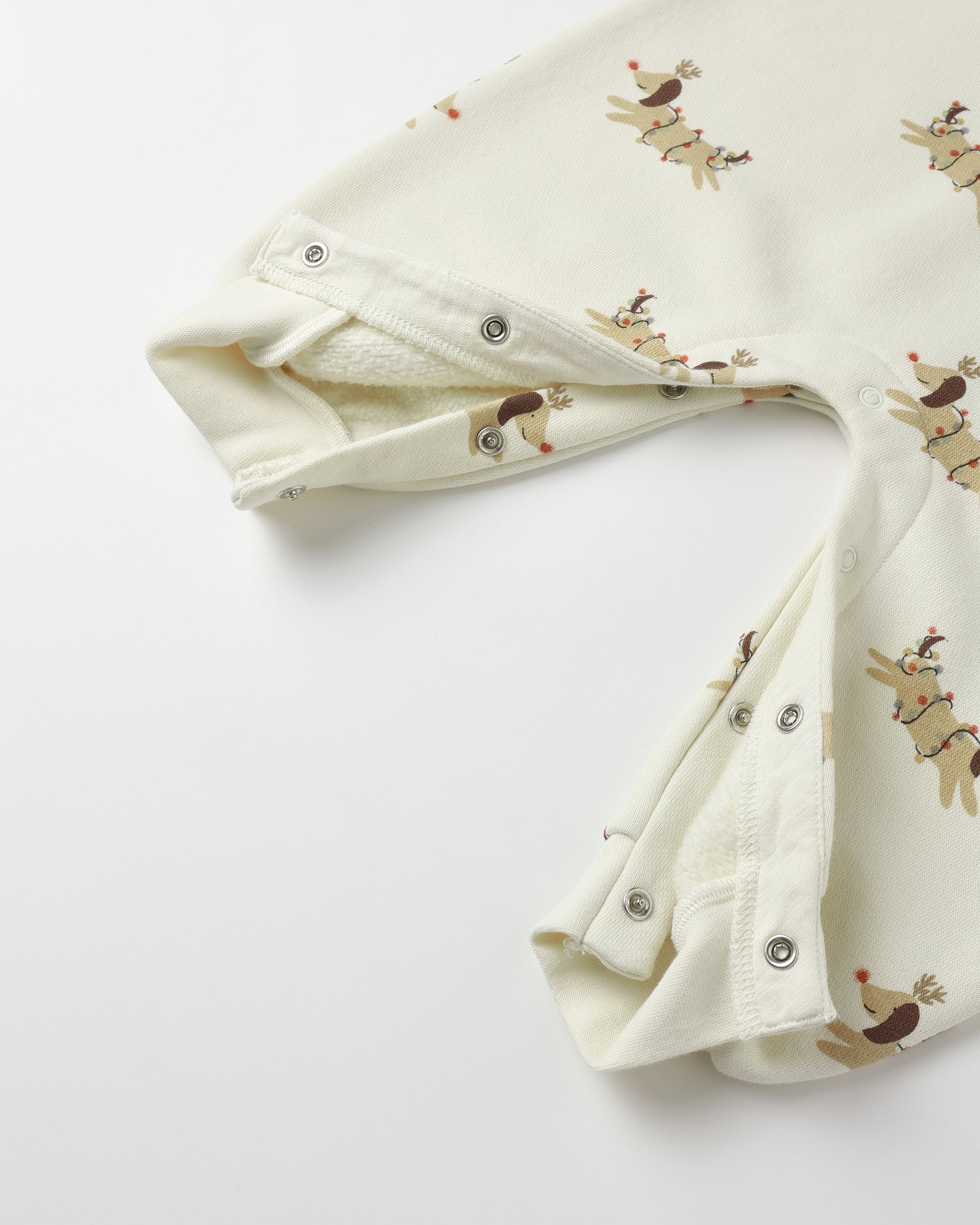 Longsleeve bubble romper made in the softest french terry fabric. Elastic leg openings, as well bottom snap closures, ensure easy changing.