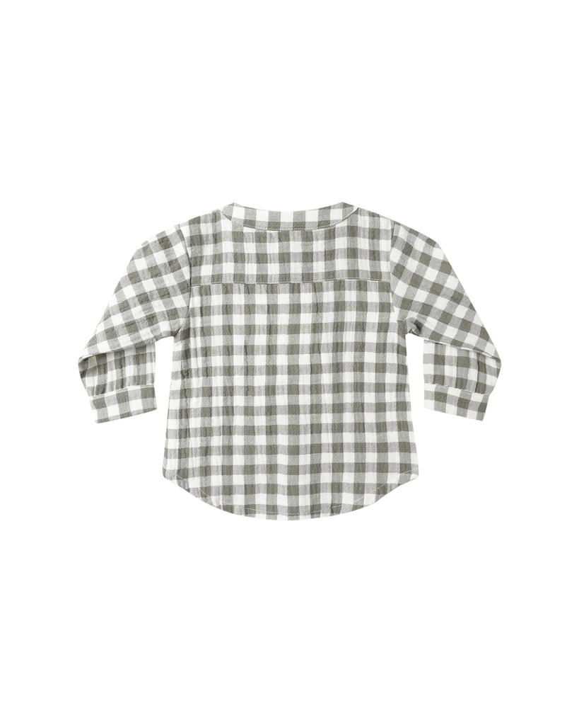 Our Long Sleeve Milo Shirt features a mandarin collar, chest pocket, and buttons along the front placket for a clean, modern look.