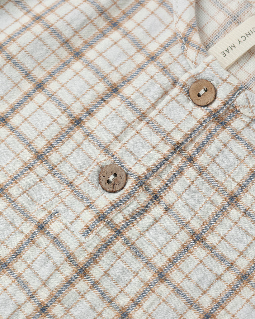 Our Zion Shirt, crafted from soft cotton gauze, features a boxy fit, long sleeves, and a button-front closure for easy wear. Pair with our Woven Pants for a coordinated, dapper look.