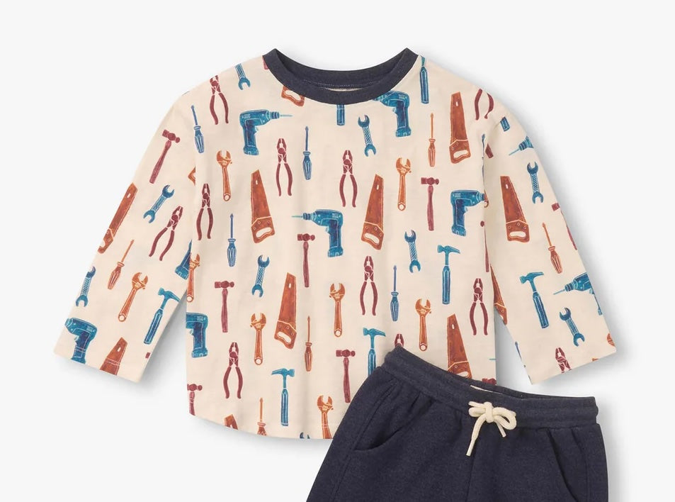 Deux Par Deux Long Sleeve Organic Cotton Jersey Tee Gray Ski Pups
