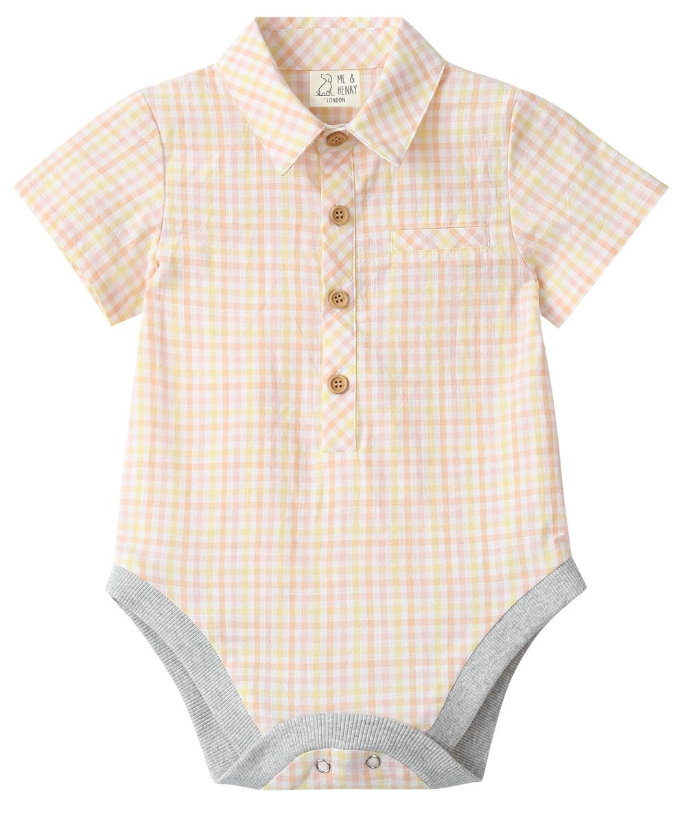 Me & Henry HELFORD Woven onesie in Peach + Yellow Plaid - is backordered and will ship as soon as it is back in stock.