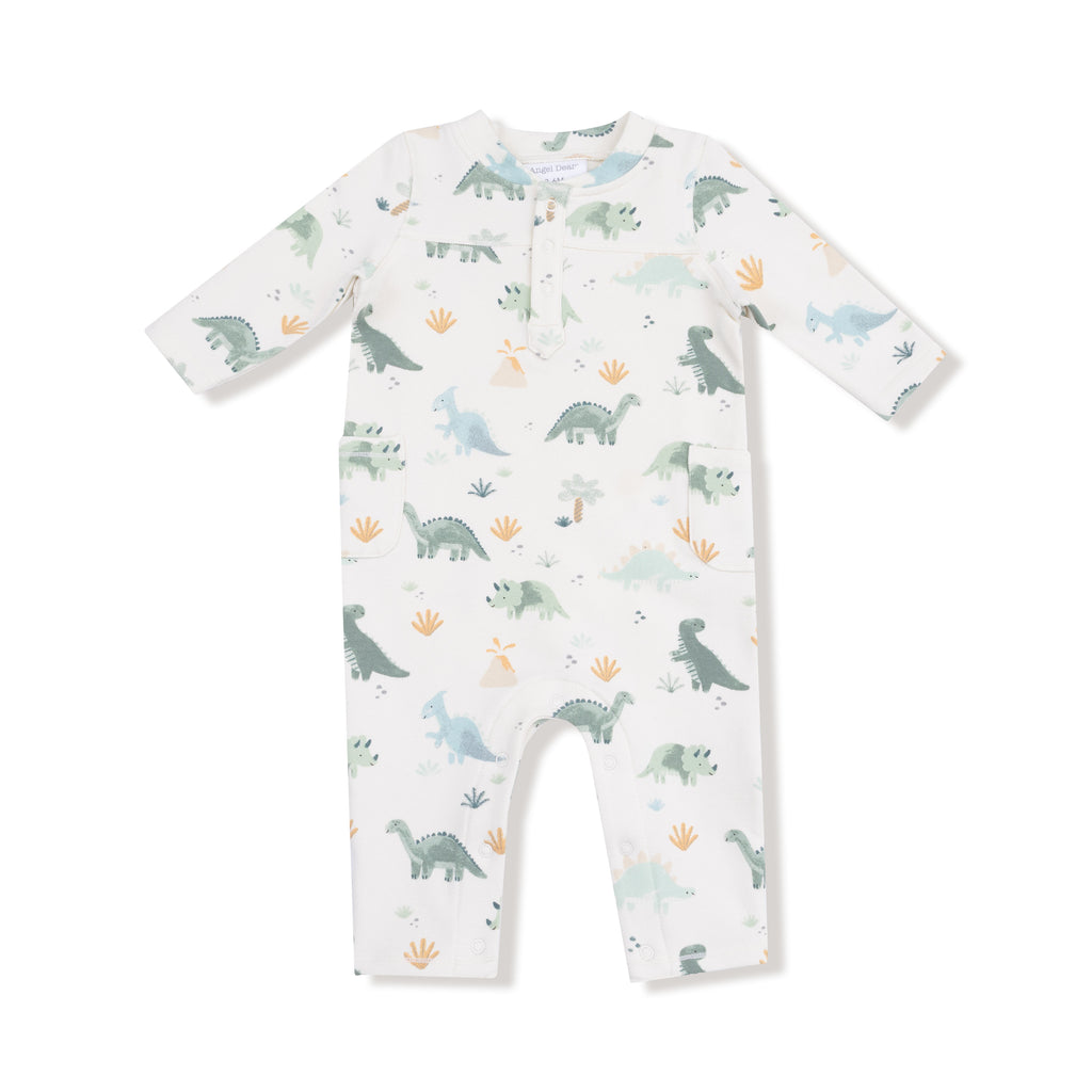Angel Dear Washy Dinos - L/S Raglan Henley Romper