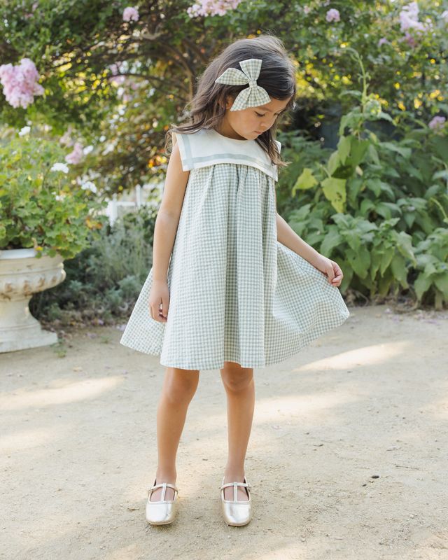 A timeless silhouette with delicate details, the Daisy Dress is designed for moments that feel extra special. Featuring a beautifully gathered full skirt and a charming sailor-style bib collar for a vintage-inspired touch
