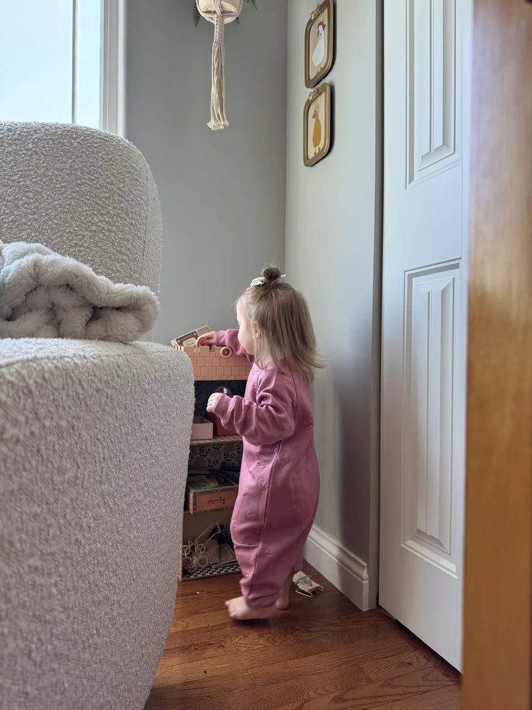 The Backstory When Joy got caught in the supermarket with a full cart and her screaming granddaughter needing a diaper change, she retreated to the public bathroom with the pull-down changing shelf, and then had to completely undress a wriggly baby just to change her diaper. Then the much-needed AHA moment arrived. We needed daywear with an easy diaper change. The jumpsuit was the first product, then we man’d up and added a collar for those dapper dudes.