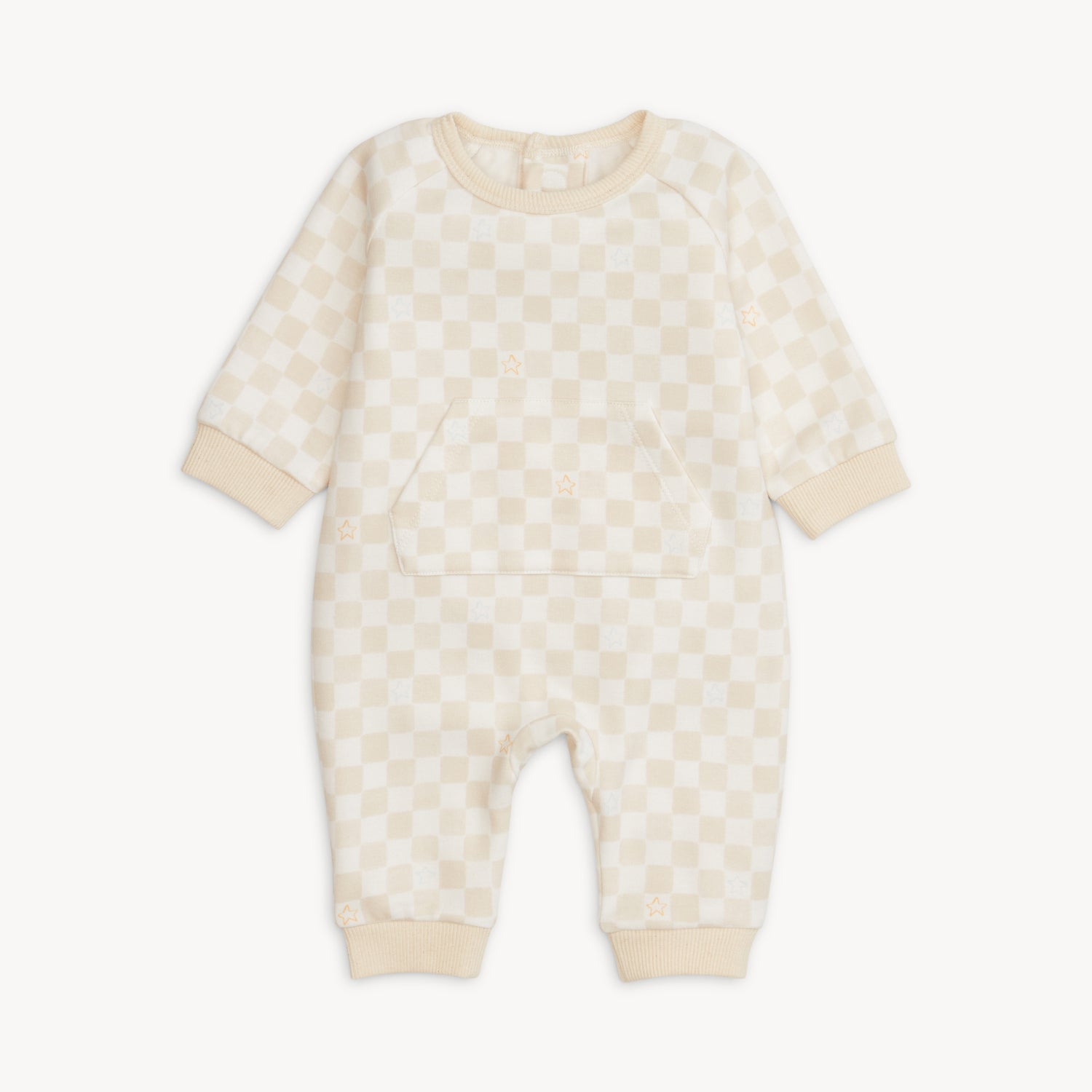Magnetic Me Chamois Checkerboard Brushed Fleece Romper