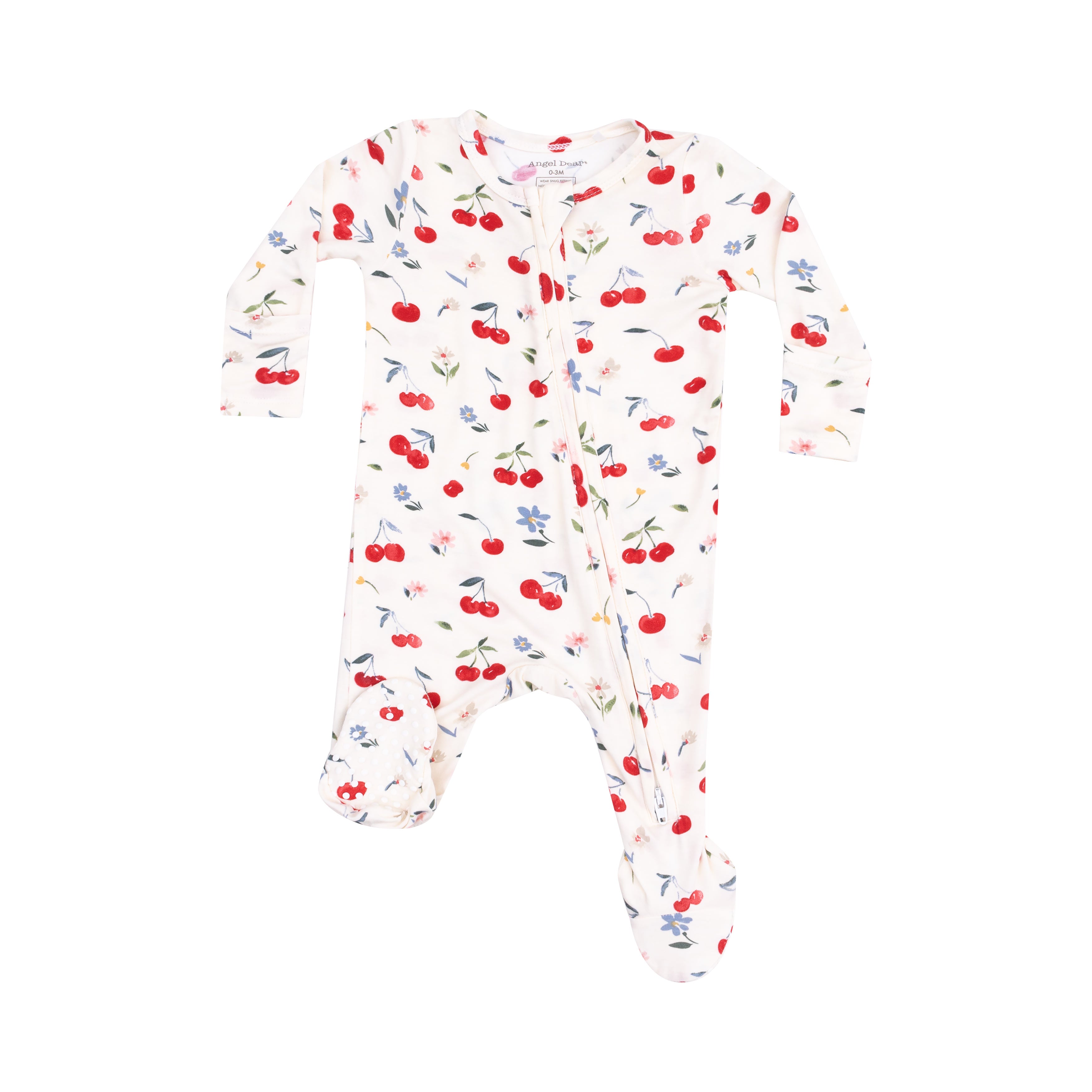 Angel Dear Watercolor Cherries + Gingham 2 Way Zipper Footie