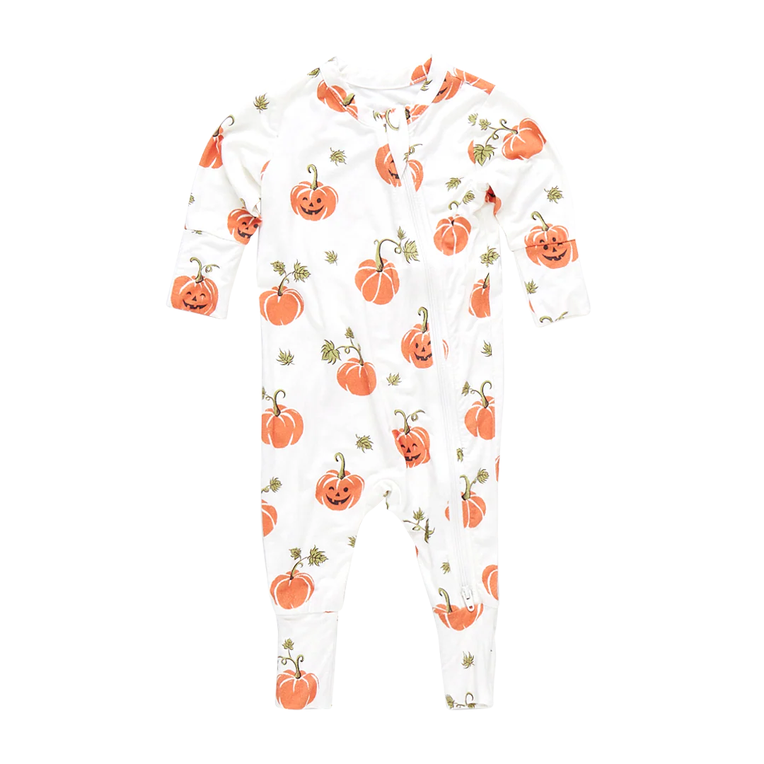 Pink Chicken Baby Bamboo Romper - Halloween Jack O Lantern