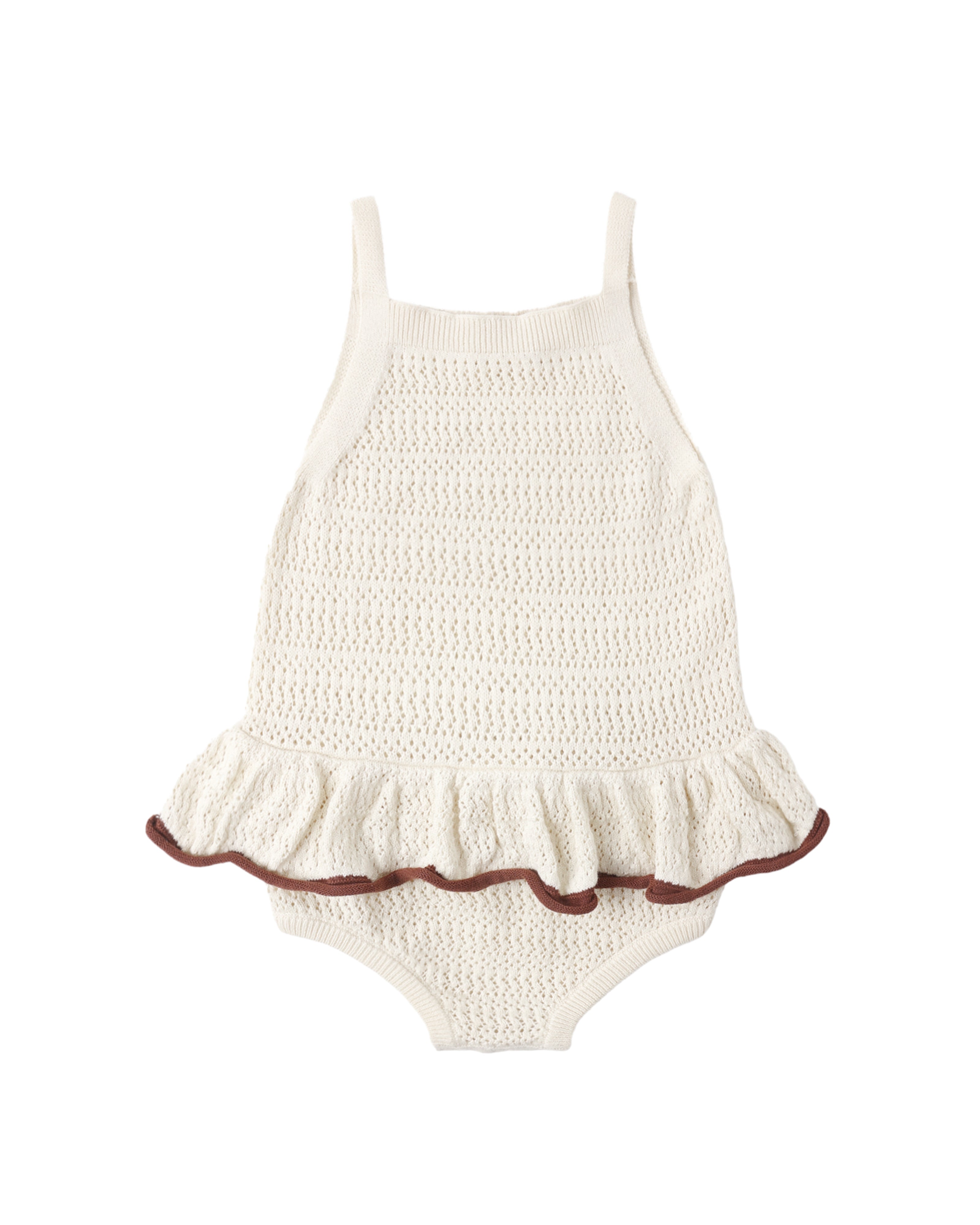 Rylee + Cru Crochet Ruffle Romper || Natural
