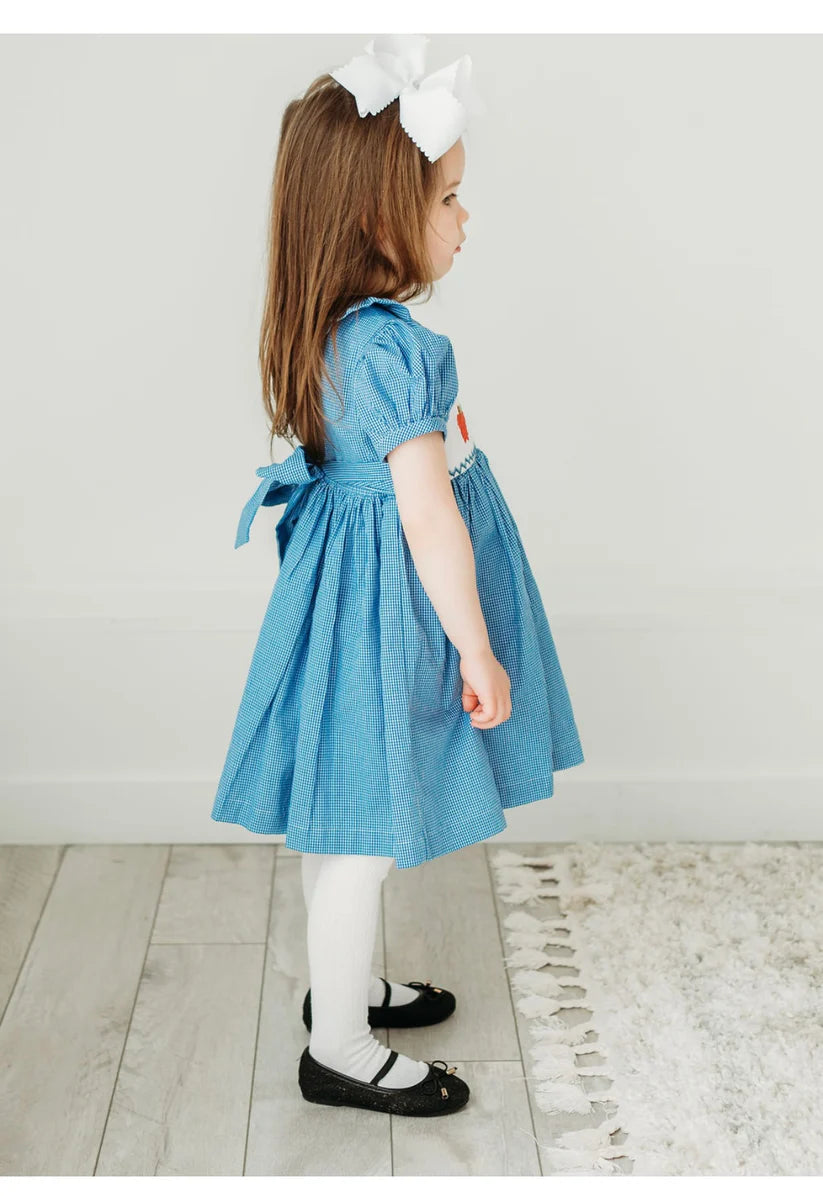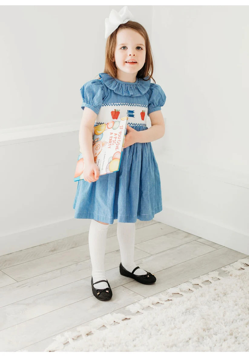 This smocked Apple dress is perfect for back to school! Fit is tts.