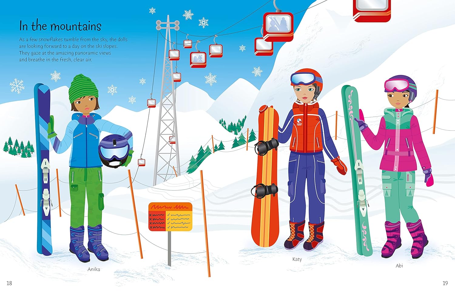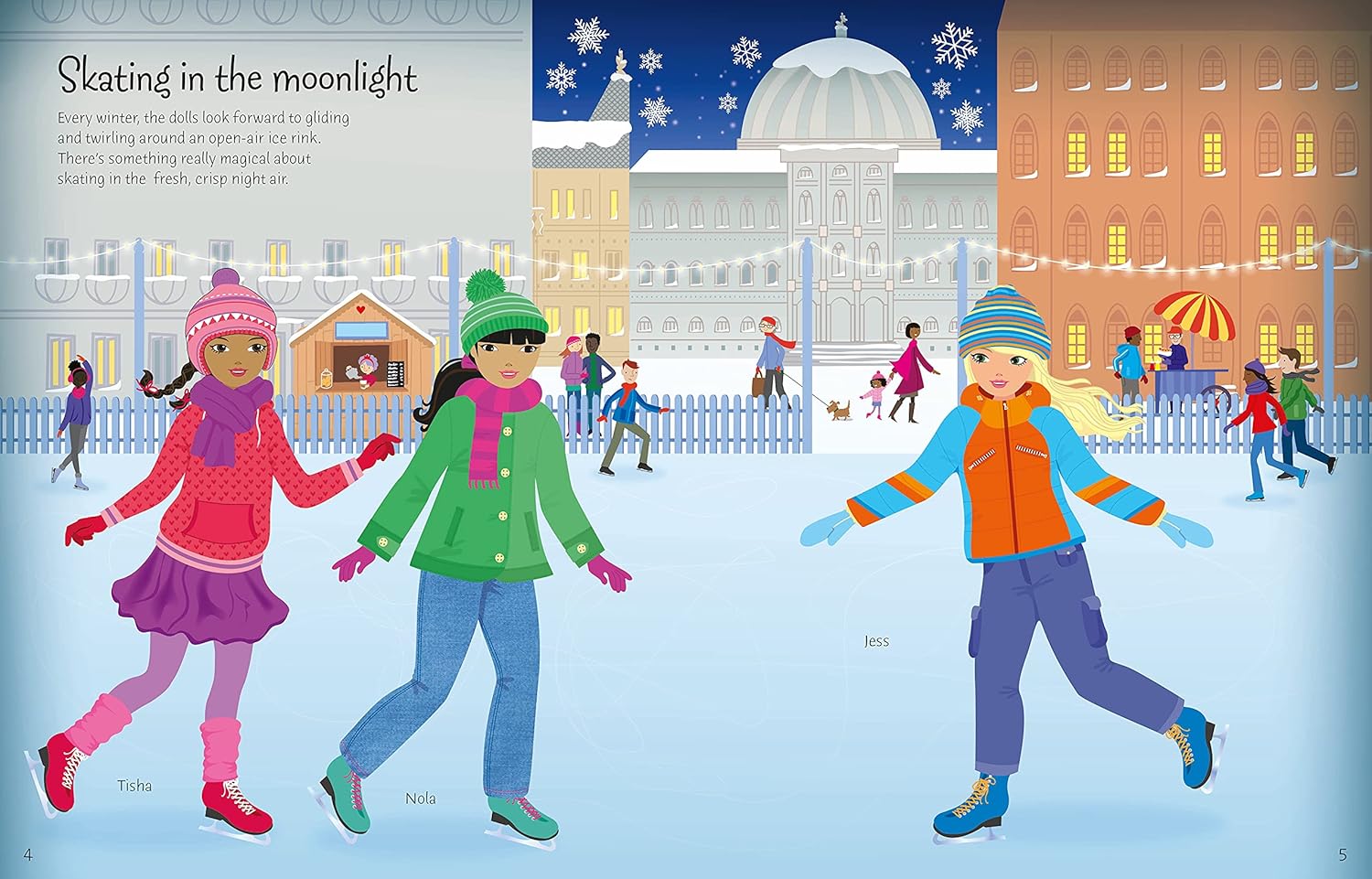 Join the dolls as they choose and decorate a Christmas tree, have a walk in a snowy forest, go ice skating on a snowy afternoon and watch as twinkly Christmas lights are switched on. Have fun choosing their outfits and adding lots of other fashion accessories.