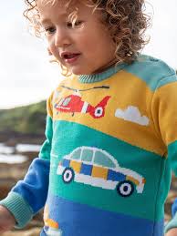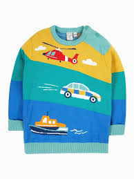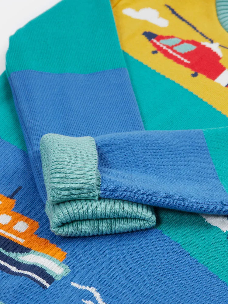 Frugi Elwood Knitted Sweater in Moss/Vehicles