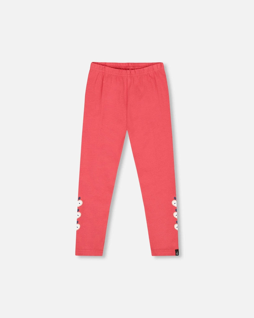 Deux Par Deux Organic Cotton Leggings Red With Apples