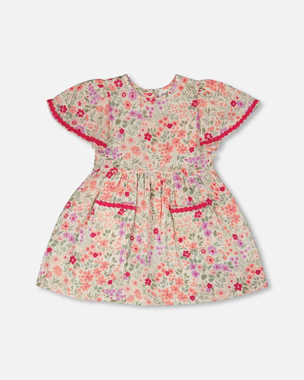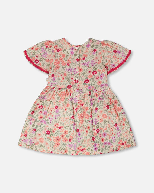 Deux Par Deux Muslin Dress Off White Printed Flowers