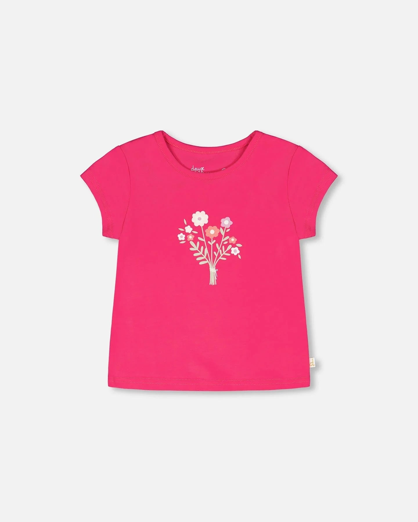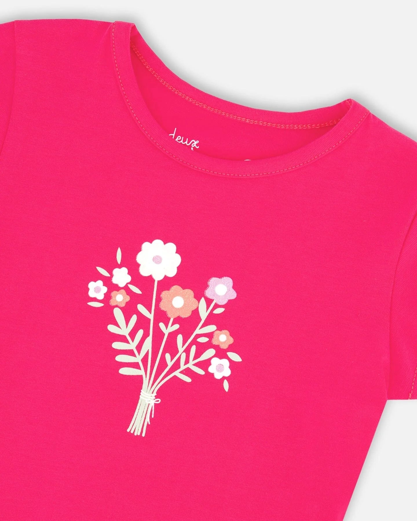 Deux Par Deux Organic Cotton Jersey T-Shirt Pink Bouquet