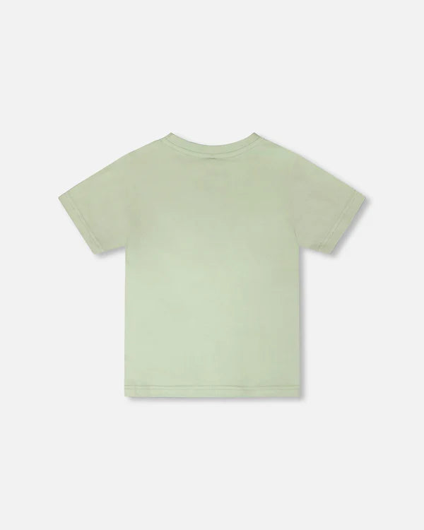 Deux Par Deux Organic Cotton Jersey T-Shirt With Mountain Print Sage