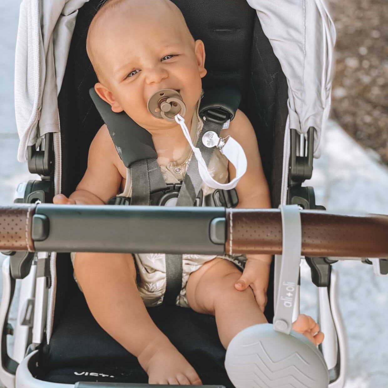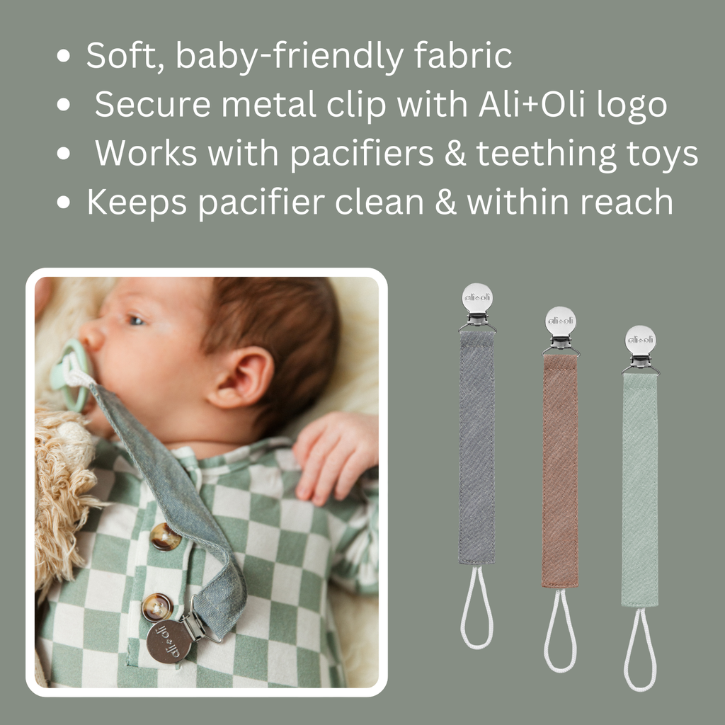 Ali+Oli pacifier clips are the perfect gift for babies. They are made from high-quality linen. They are 10 inches in length which means they are a safe length for your little one and 1 inch wide.