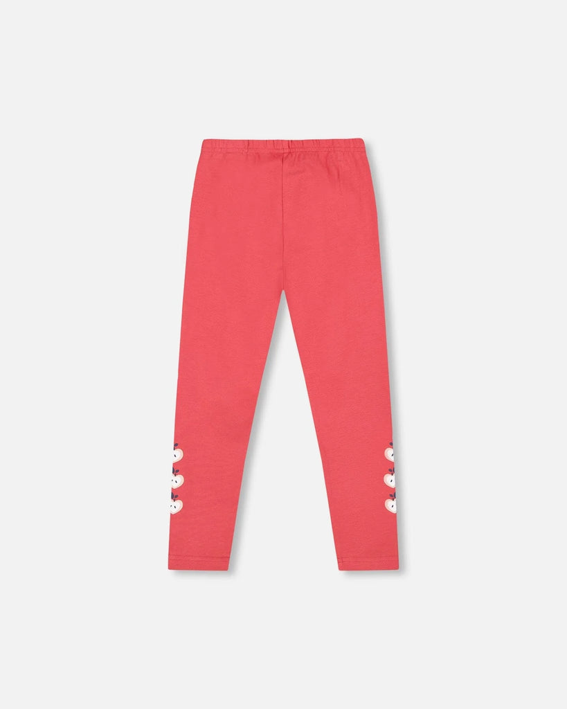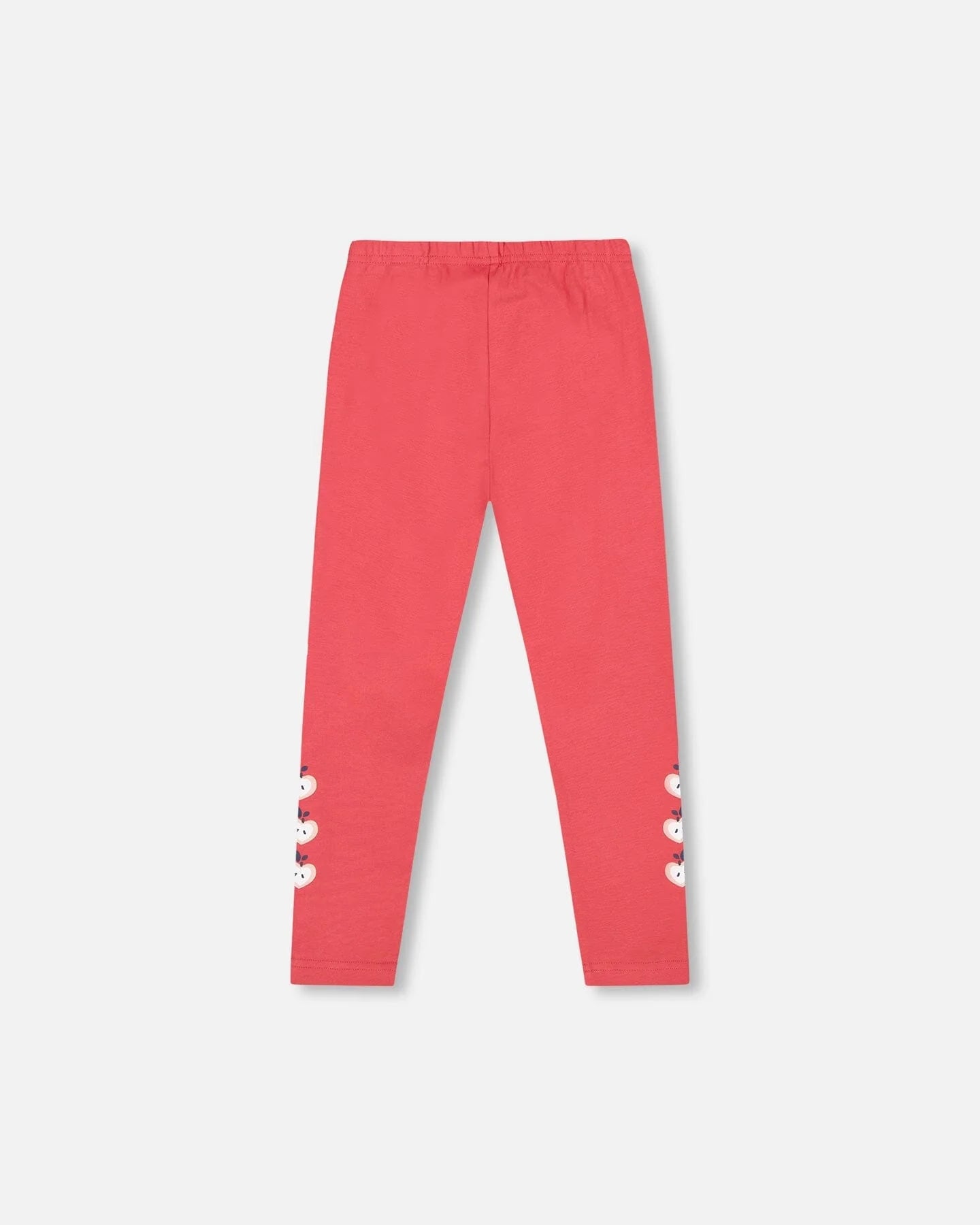 Deux Par Deux Organic Cotton Leggings Red With Apples