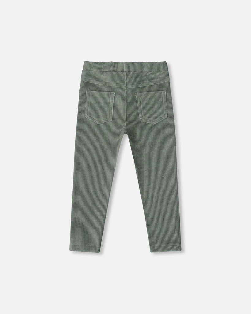 The Stretch Velour Tregging Jade Green is a stylish and comfy pick for your little fashionista. Crafted from a soft stretch rib velour blend of cotton, polyester, and elastane, these pants offer the perfect balance of comfort and flexibility for all-day wear. Featuring a solid jade green color, two front pockets and a stretch fit, these pants are ideal for pairing with any top from our "Frost Flowers" collection for a cozy yet fashionable look.