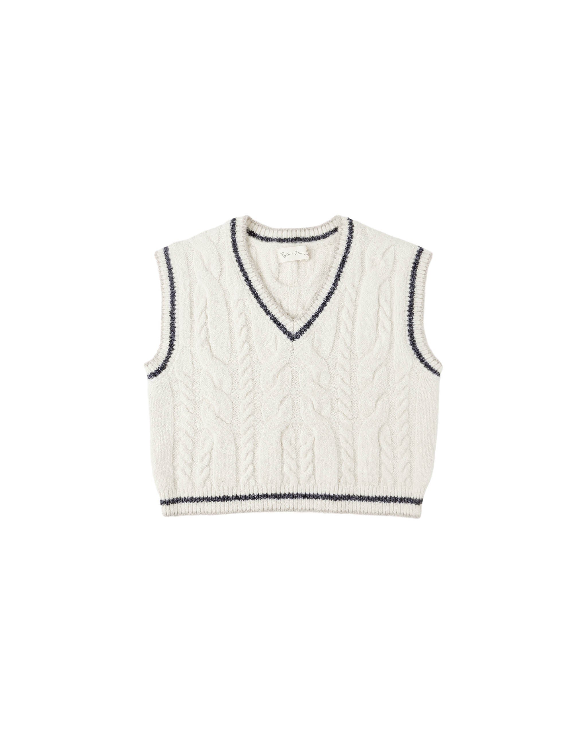 This preppy, boxy-fit Sweater Vest features a classic v-neckline, dropped shoulders, and ribbed trim at the hems for a vintage look.