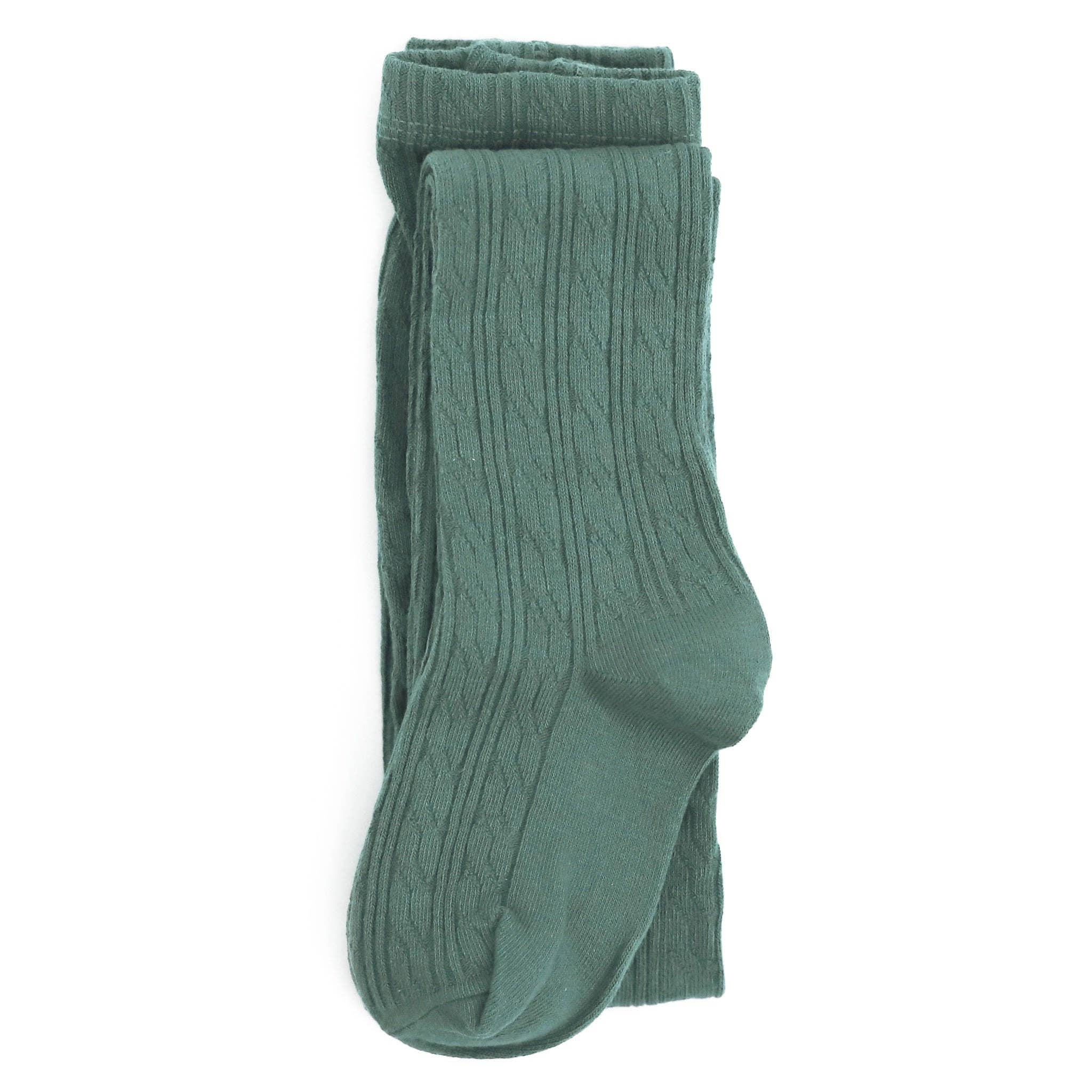 Spruce Cable Knit Tights for babies, toddlers and girls Classic. Cute. Durable. Little Stocking Co. cable knit tights are perfect for all occasions! We love them dressed up with dresses and skirts or dressed down beneath a pair of denim shorts for a playful, edgy look! Our cable knit stockings are stretchy which makes them extremely comfortable and also allows them to fit a wide range of children. Tights do run big. If between sizes, we'd recommend sizing down for a better current fit. Machine wash cold with like colors. Tumble dry low or lay flat to dry. 79% cotton / 19% polyester / 2% spandex Imported.