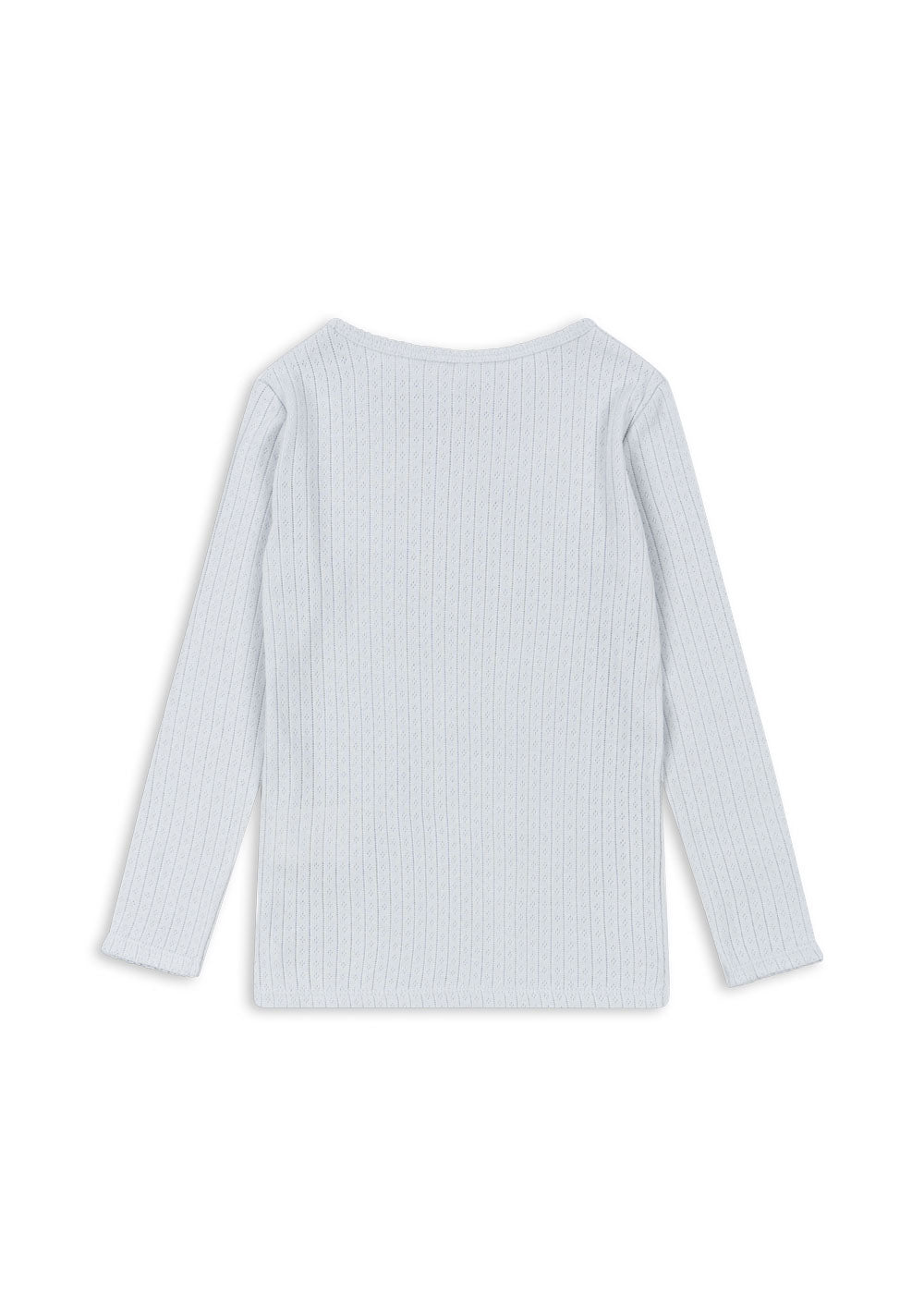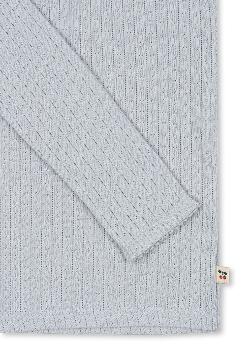 Soft cotton blouse with decorative pointelle. A soft and comfortable base layer and wardrobe essential. Made from 100% organic cotton Please note: Push buttons on left shoulder from size 9M - 18M for a better fit over tiny heads. GOTS, Organic, certified by CU1094701