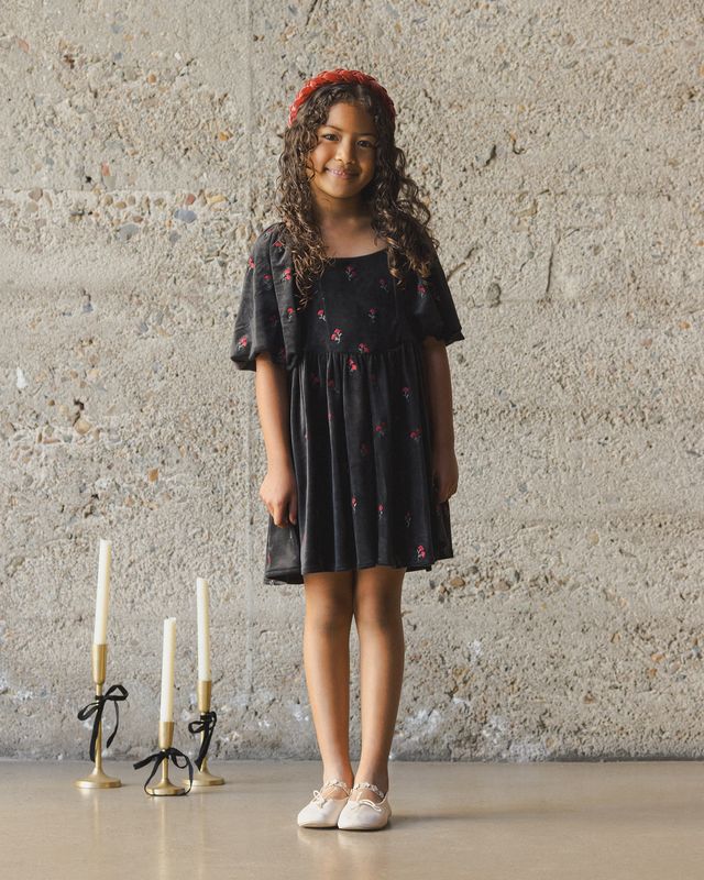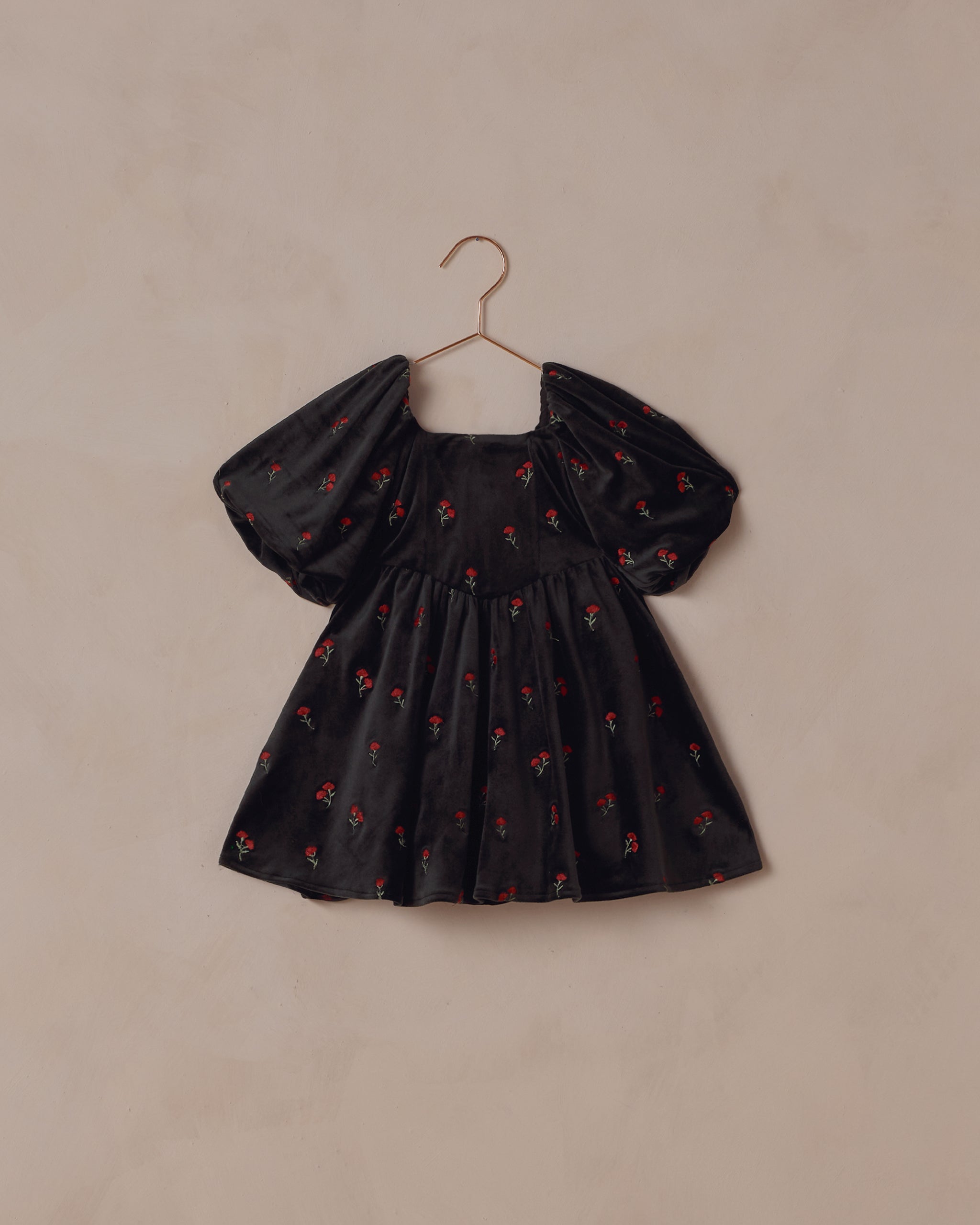 Featuring our ‘velvet floral’ print on our ‘black’ hue. These red embroidered flowers are sure to be a statement at any holdiday gathering this winter.