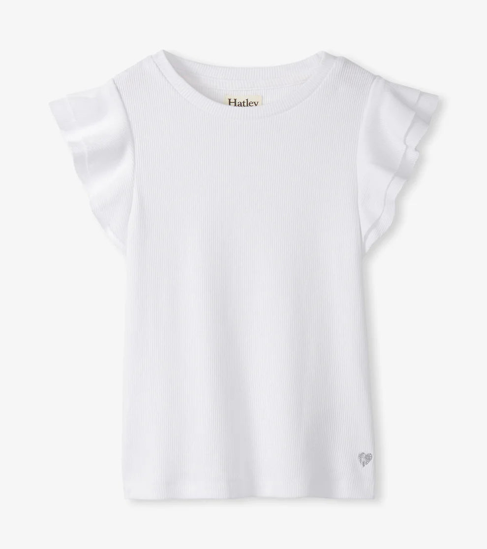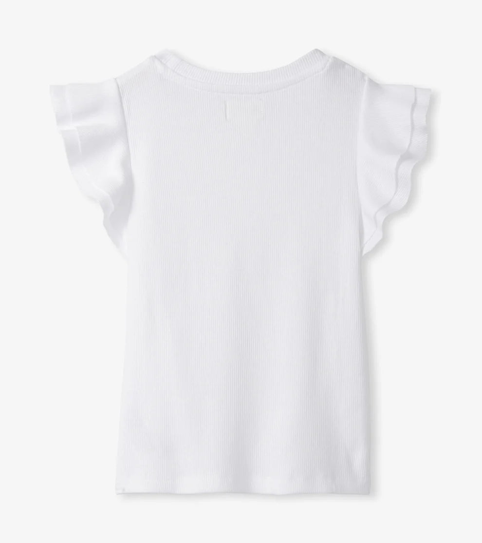 Hatley Girls White Ruffle Sleeve Tank