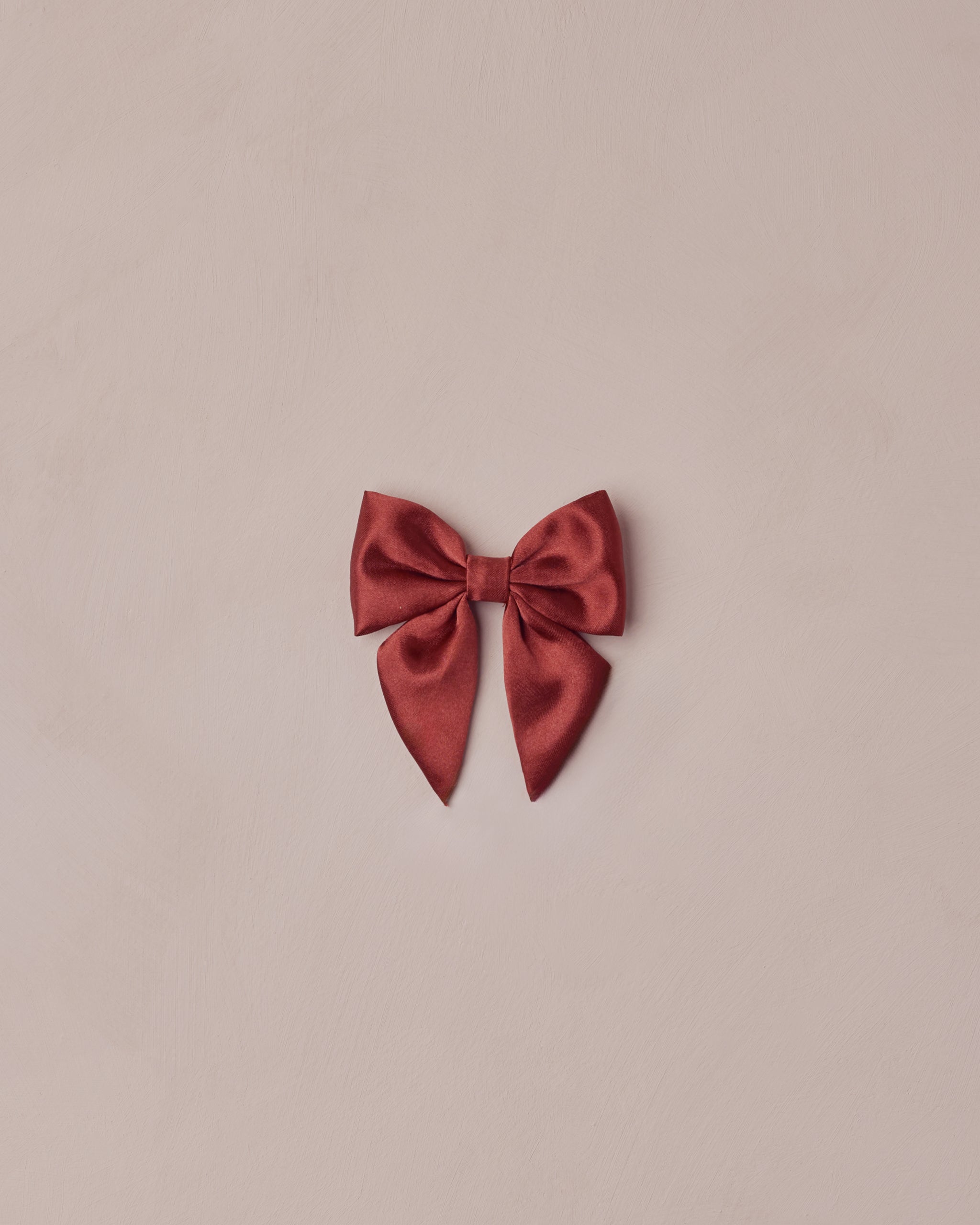 A sweet bow attached to a rose gold alligator clip for easy wear.Color: Ruby Care: Spot clean only.Made of 100% polyester