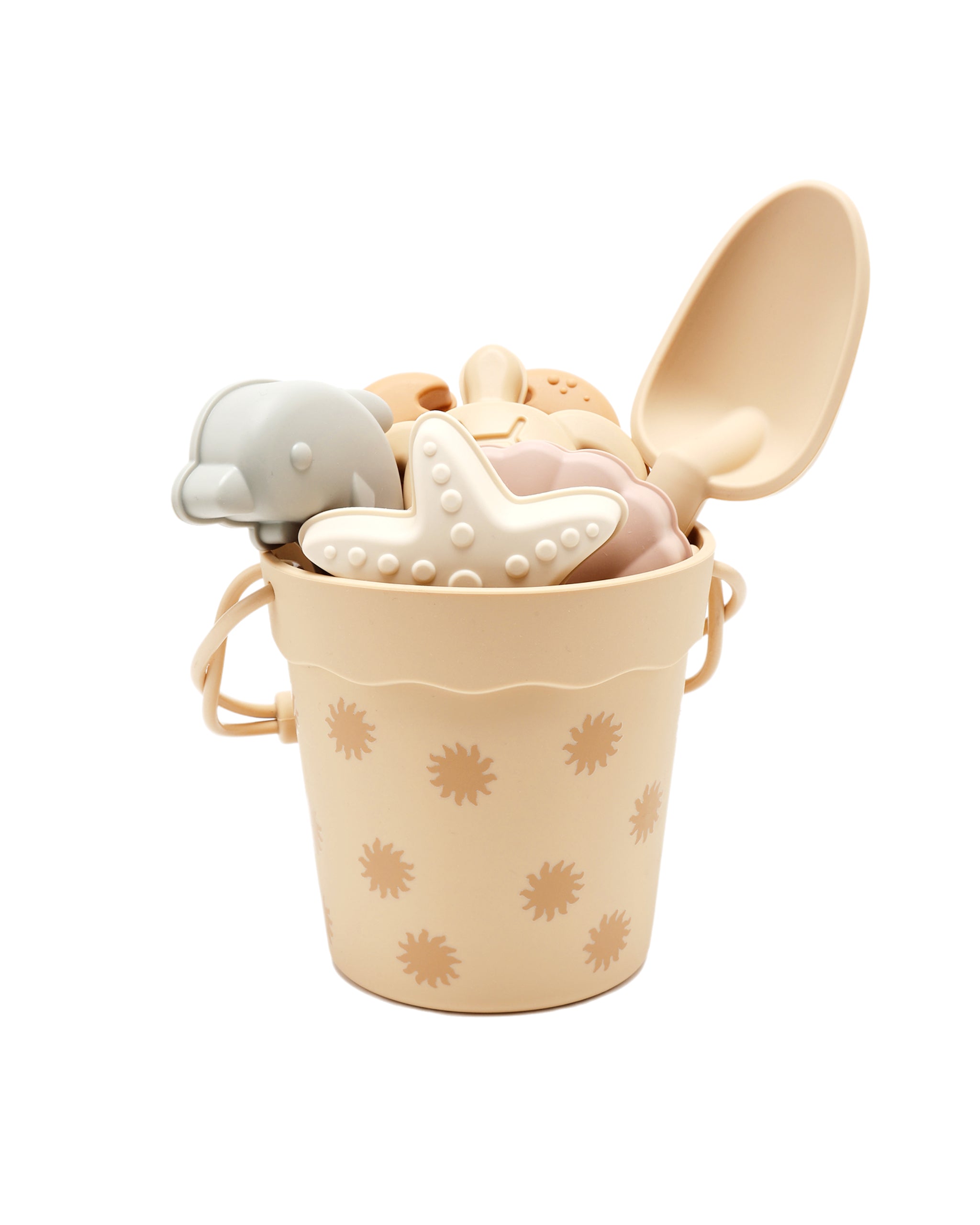 Featuring our 'butterscotch' colored shovel + bucket with our 'suns' design.