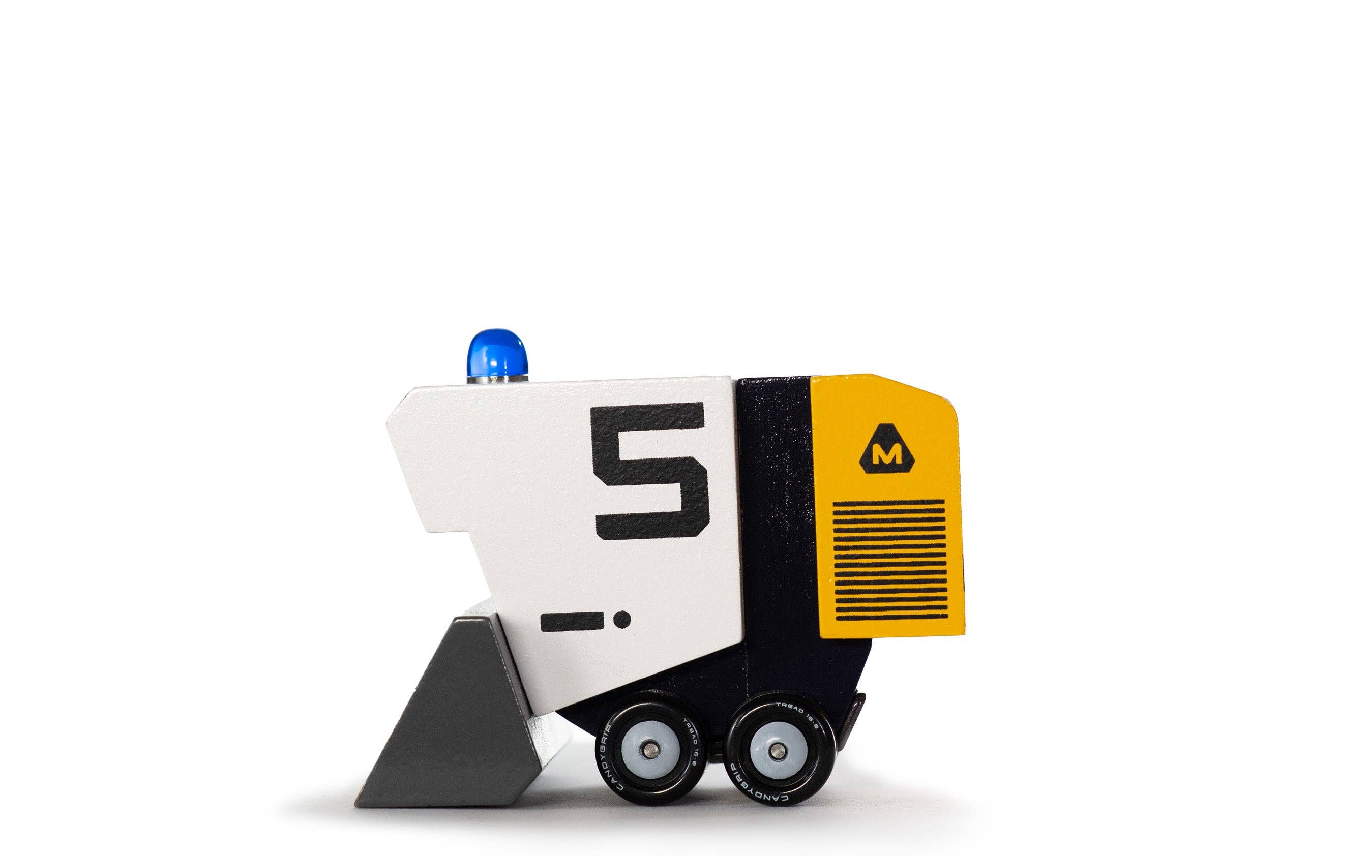 The bulldozer of the Sector 9 crew of vehicles! Dozzie has a magnetically detachable bulldozer blade and is ready to take on the biggest challenges.