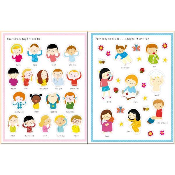 An illustrated picture word book featuring over 150 stickers that offers a fun way to encourage vocabulary building for children who are learning about the human body. It includes themes such as parts of your body, your head, your clothes, things you can do, your senses and things your body needs.
