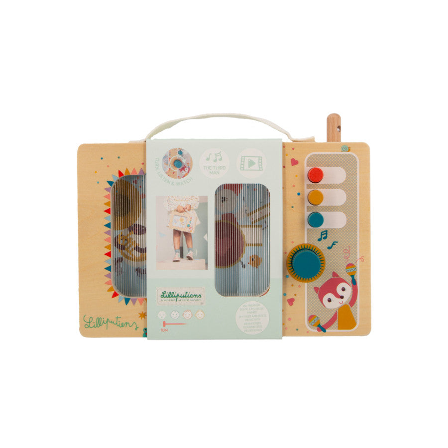 A quick turn of the button on the music box, and the orchestra is in full swing, striking up a joyful tune. Thanks to the handle, you can take this beautifully illustrated music box wherever you may go.