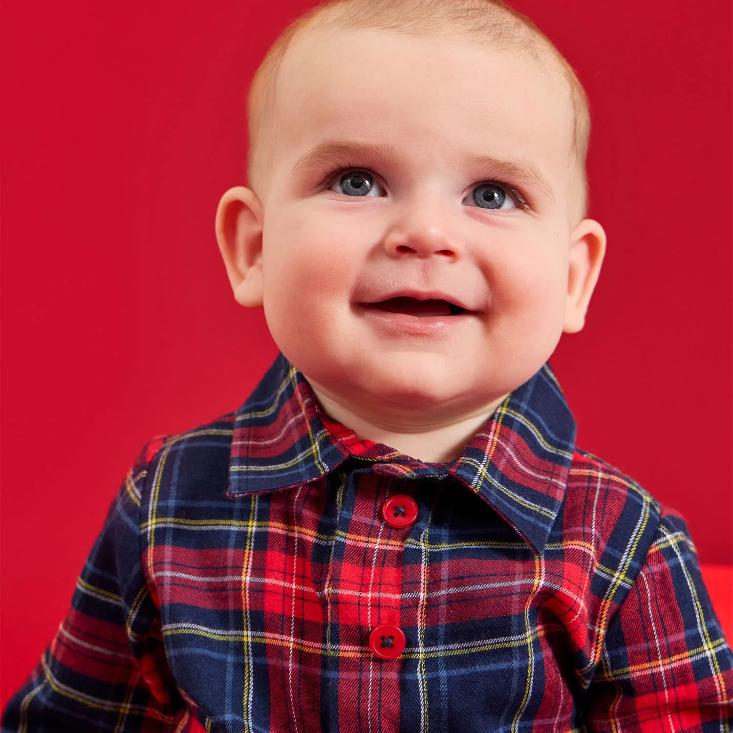Our best-selling Romper gets a polo collar for a dressier, put-together look. Quick and quiet, magnetic closures line the front for a no-fuss solution to dressing and changes, while cozy flannel gives you that warm feeling, the same one you get nestled near the fireplace.