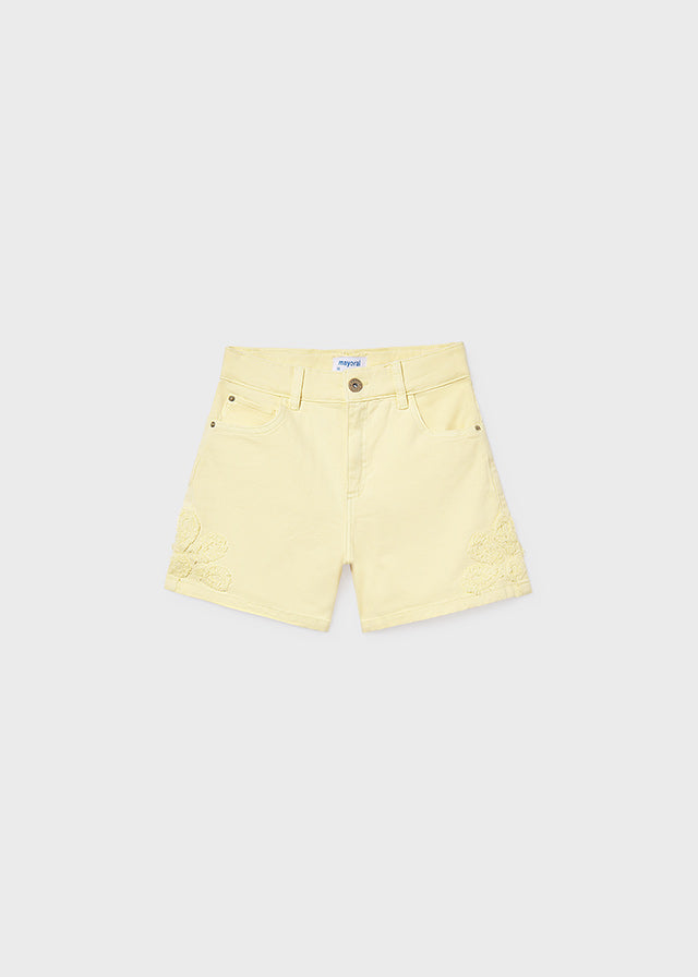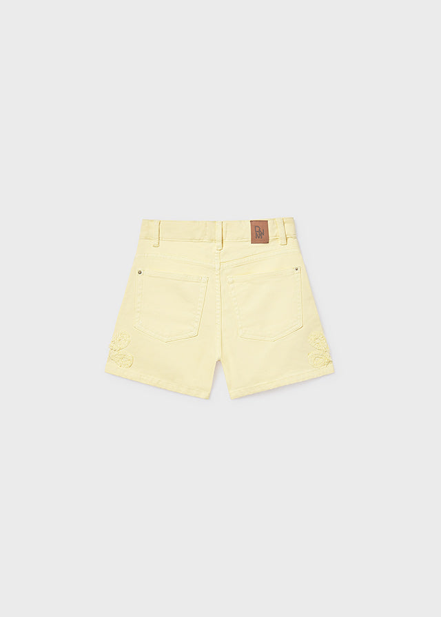 Mayoral Tween Soft Denim Shorts in Vanilla Yellow