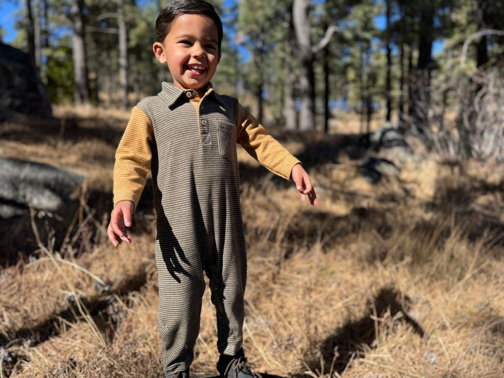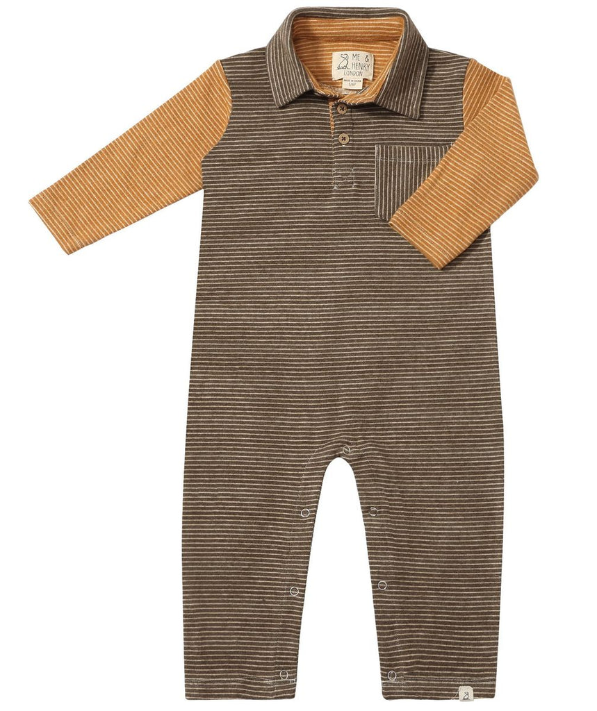 Me & Henry Arlington Polo Romper in Green with Gold Arms