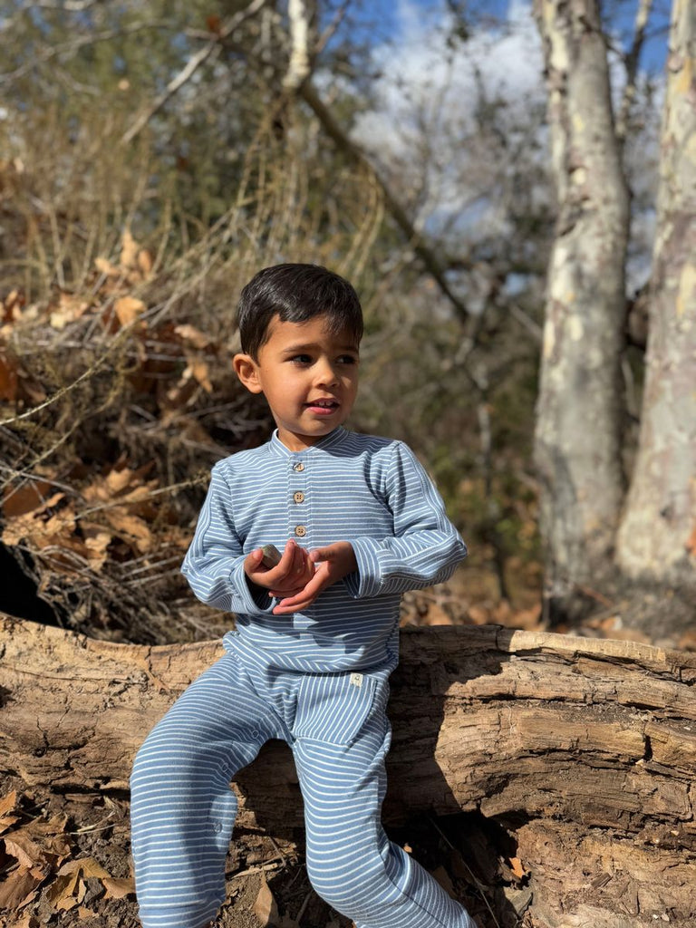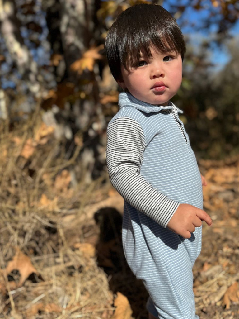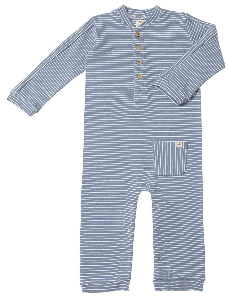 Me & Henry Mitch Henley Romper in Blue/White