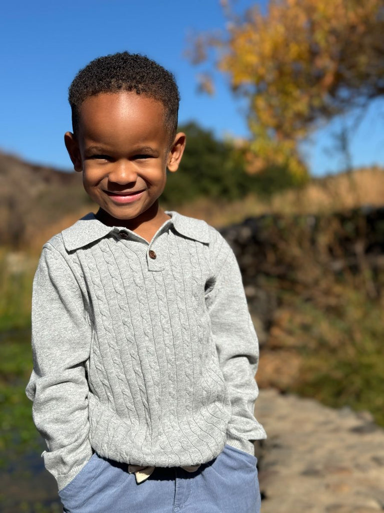 Me & Henry Christian Cable Polo IN Grey