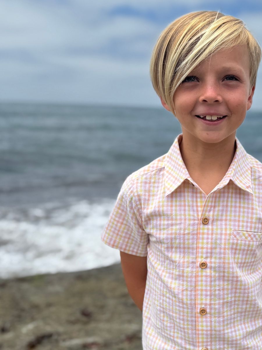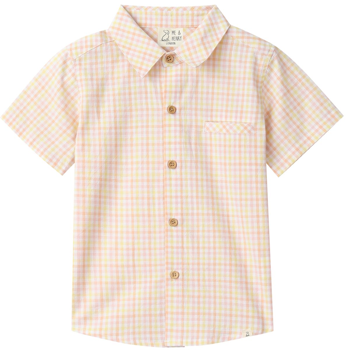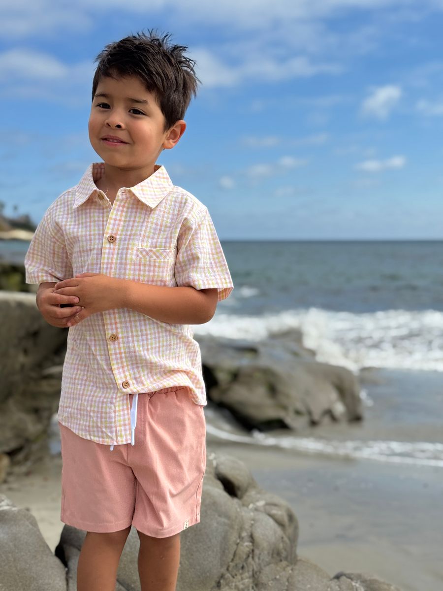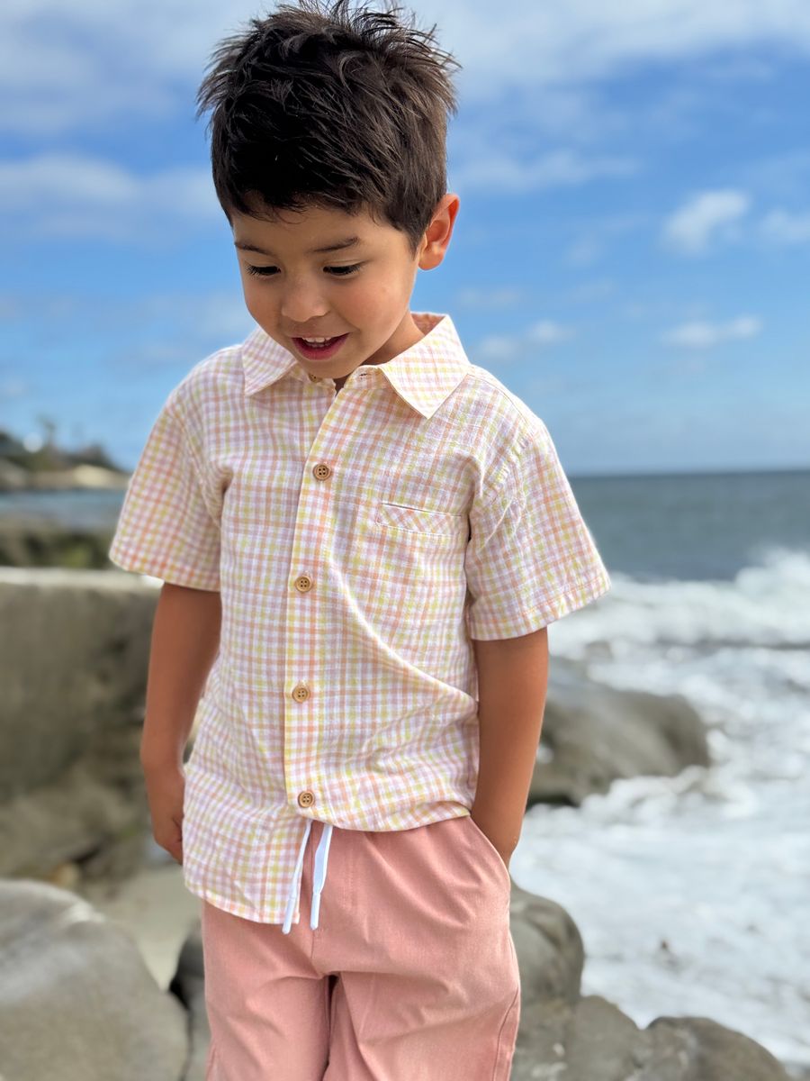 Me & Henry NEWPORT Woven Shirt in Peach + Yellow Plaid - is backordered and will ship as soon as it is back in stock.