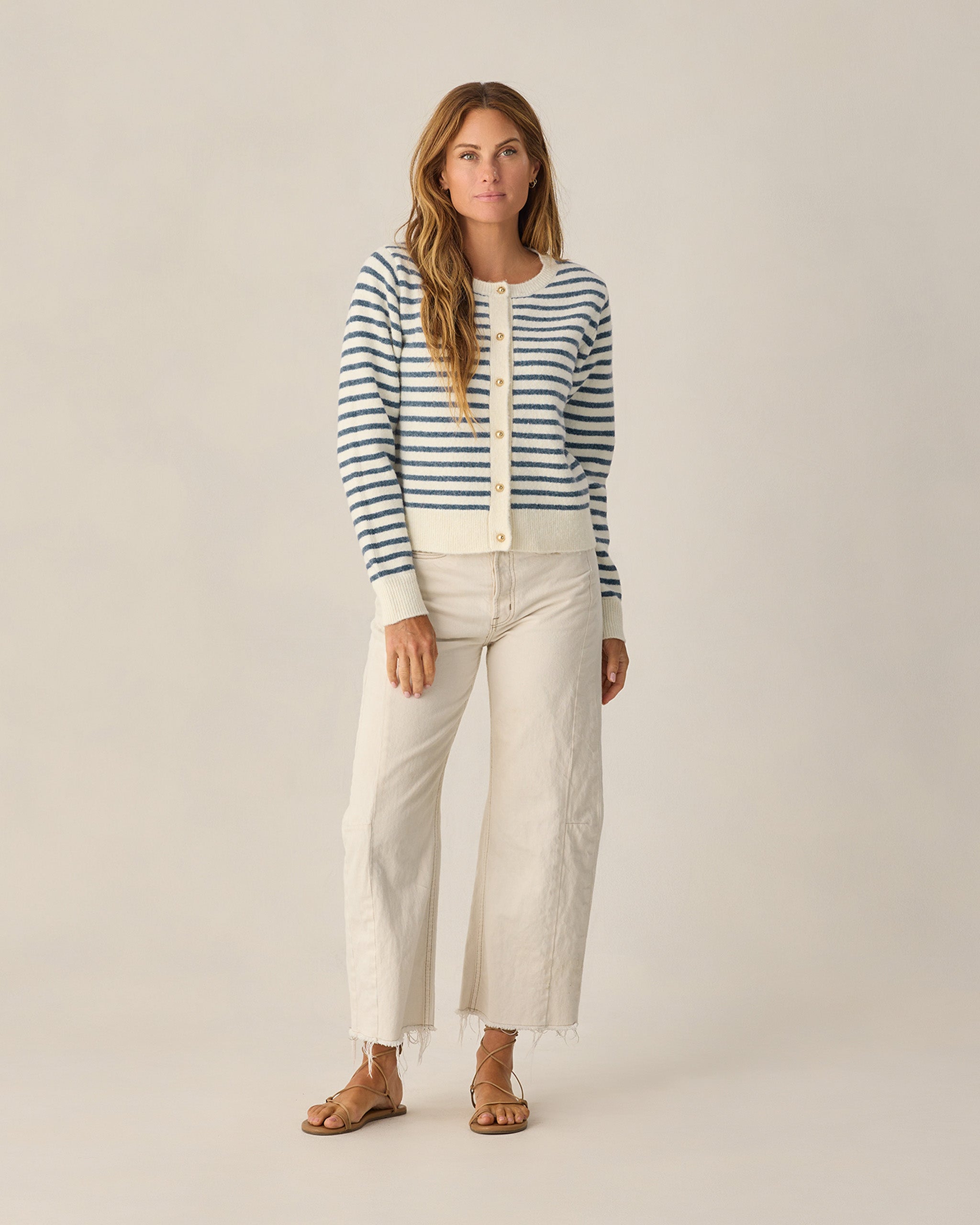 Rylee + Cru Women's Classic Cardigan | Maritime Stripe