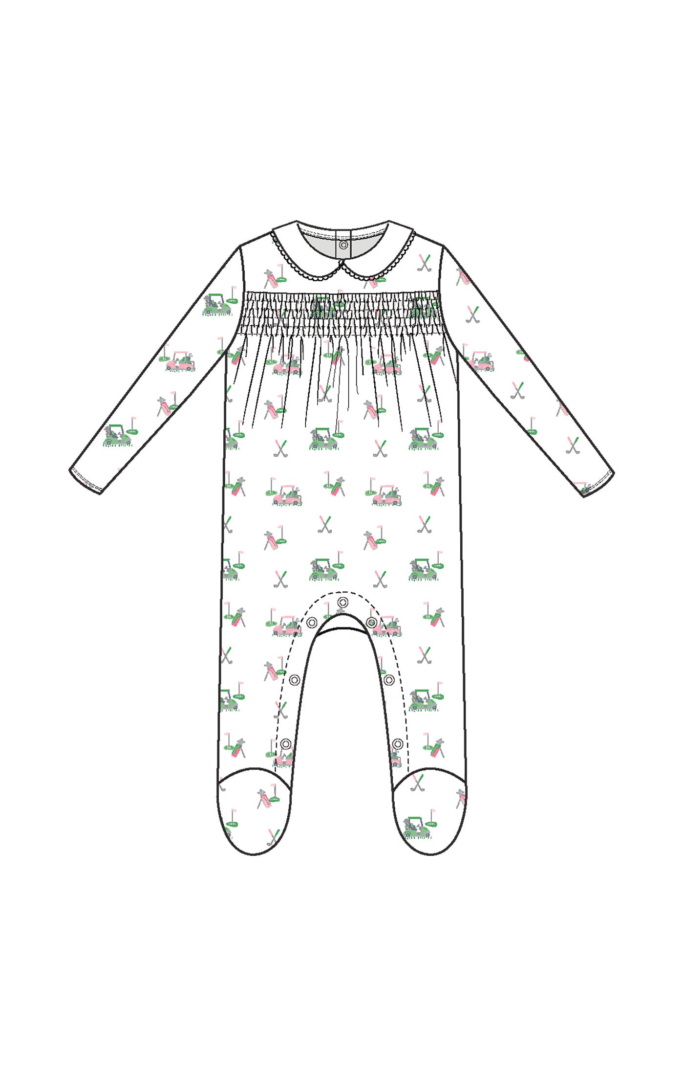 Angel Dear Baby Golf Carts Pink Smocked Peter Pan Footie