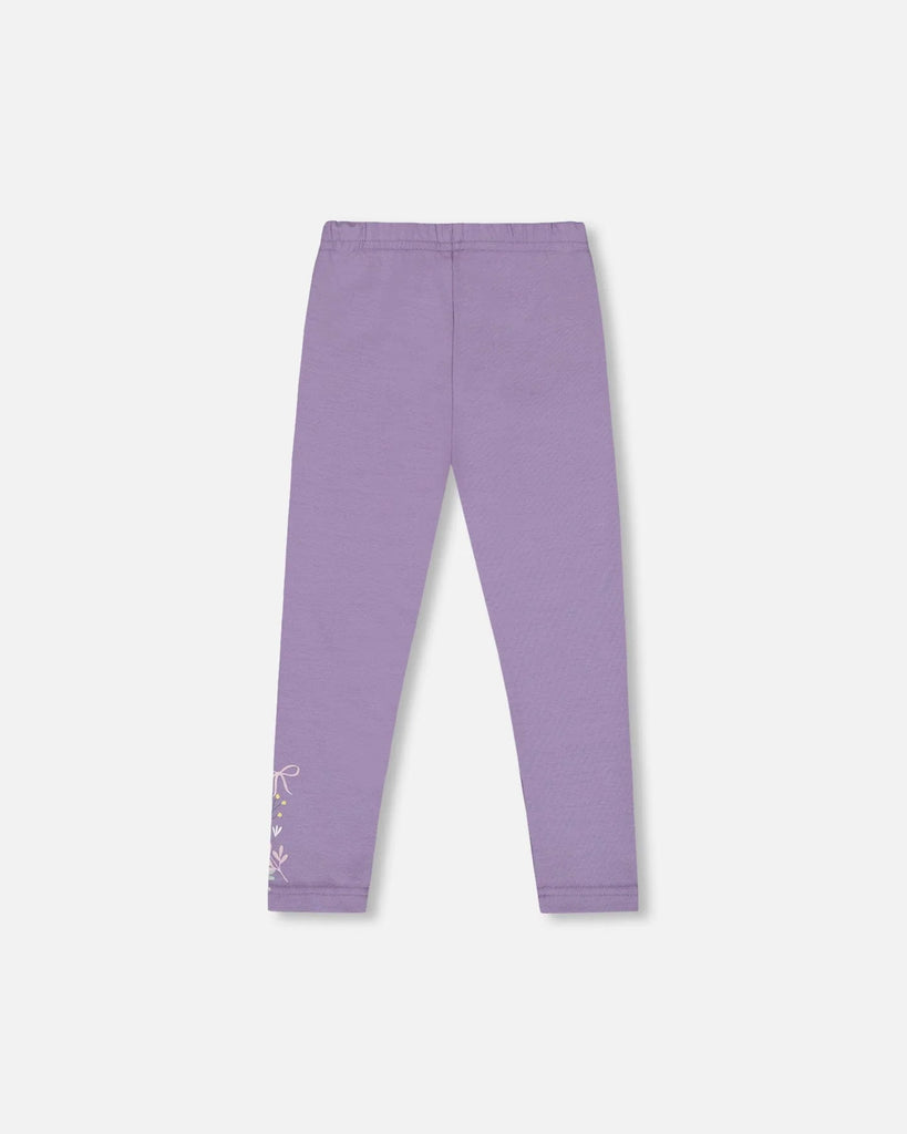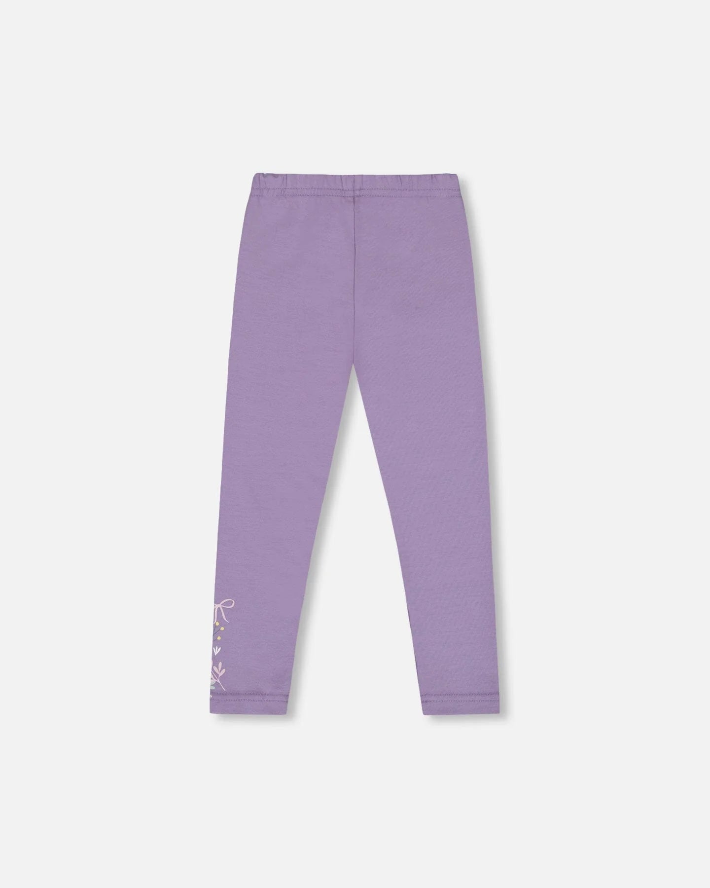 Deux Par Deux Organic Cotton Jersey Leggings Purple with Floral Detail