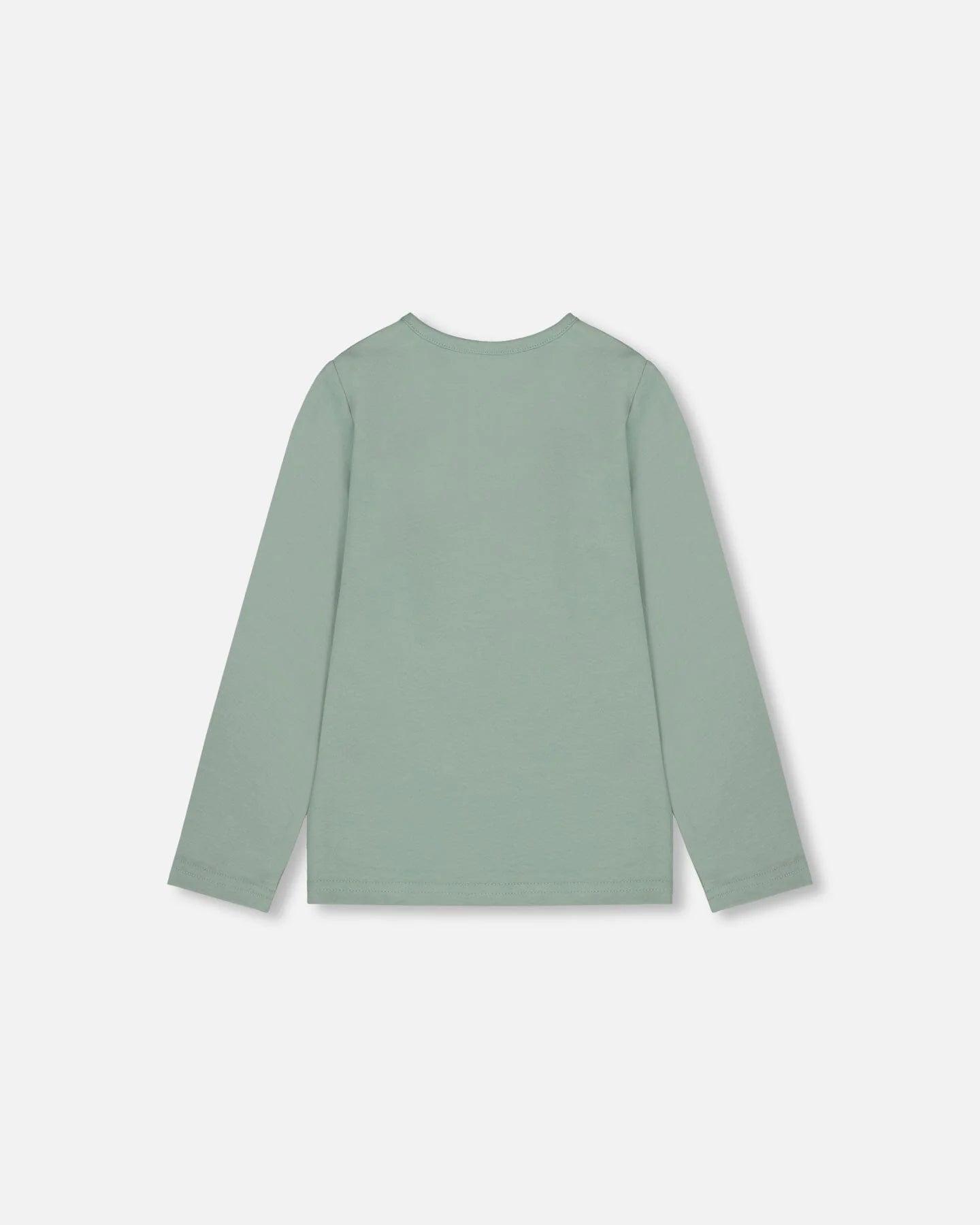Deux Par Deux Organic Cotton Jersey Top Jade Green With Owl