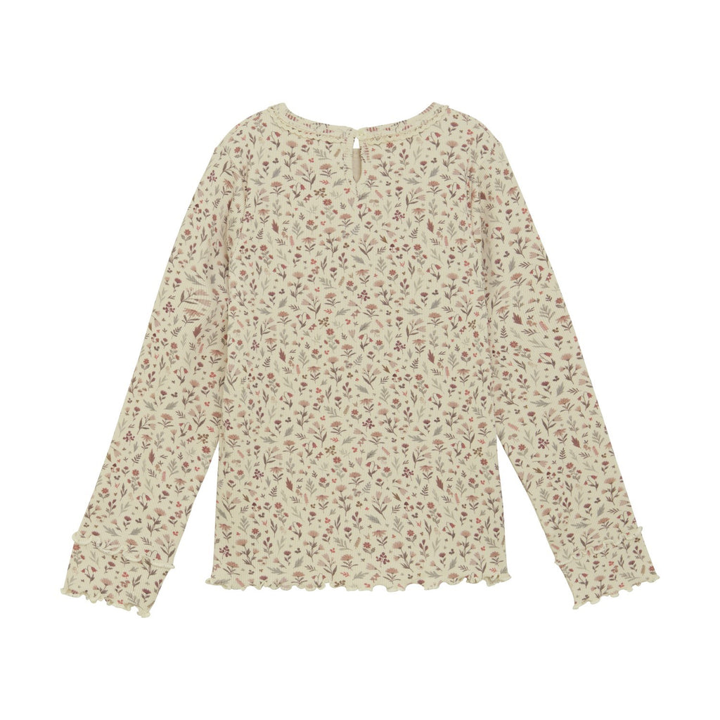 Minymo Rib Long Sleeve Shirt in Seashell Floral - is backordered and will ship as soon as it is back in stock.