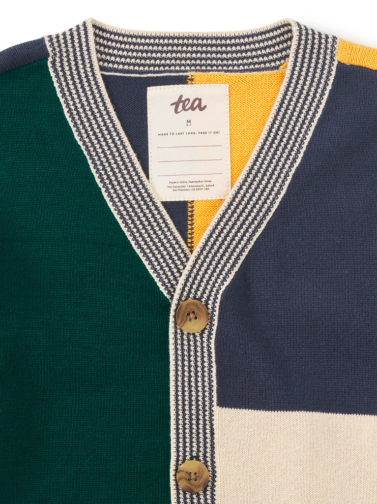 Brighten up their everyday with this joyful colorblock sweater dress, inspired by traditional Korean pojagi patchwork. Crafted in all-season 100% cotton, this cheerful favorite combines playful color and cozy comfort in one easy outfit. The above-elbow sleeves and breezy above-the-knee length make it perfect for layering on cooler days or wearing solo when the sun's out. Striped trim adds a sporty touch to the neckline and sleeves for extra charm.