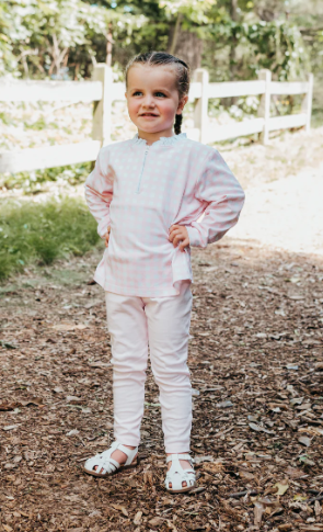 Our Lily pink leggings will be a staple in her wardrobe. These pima leggings are buttery soft and fit is true to size.